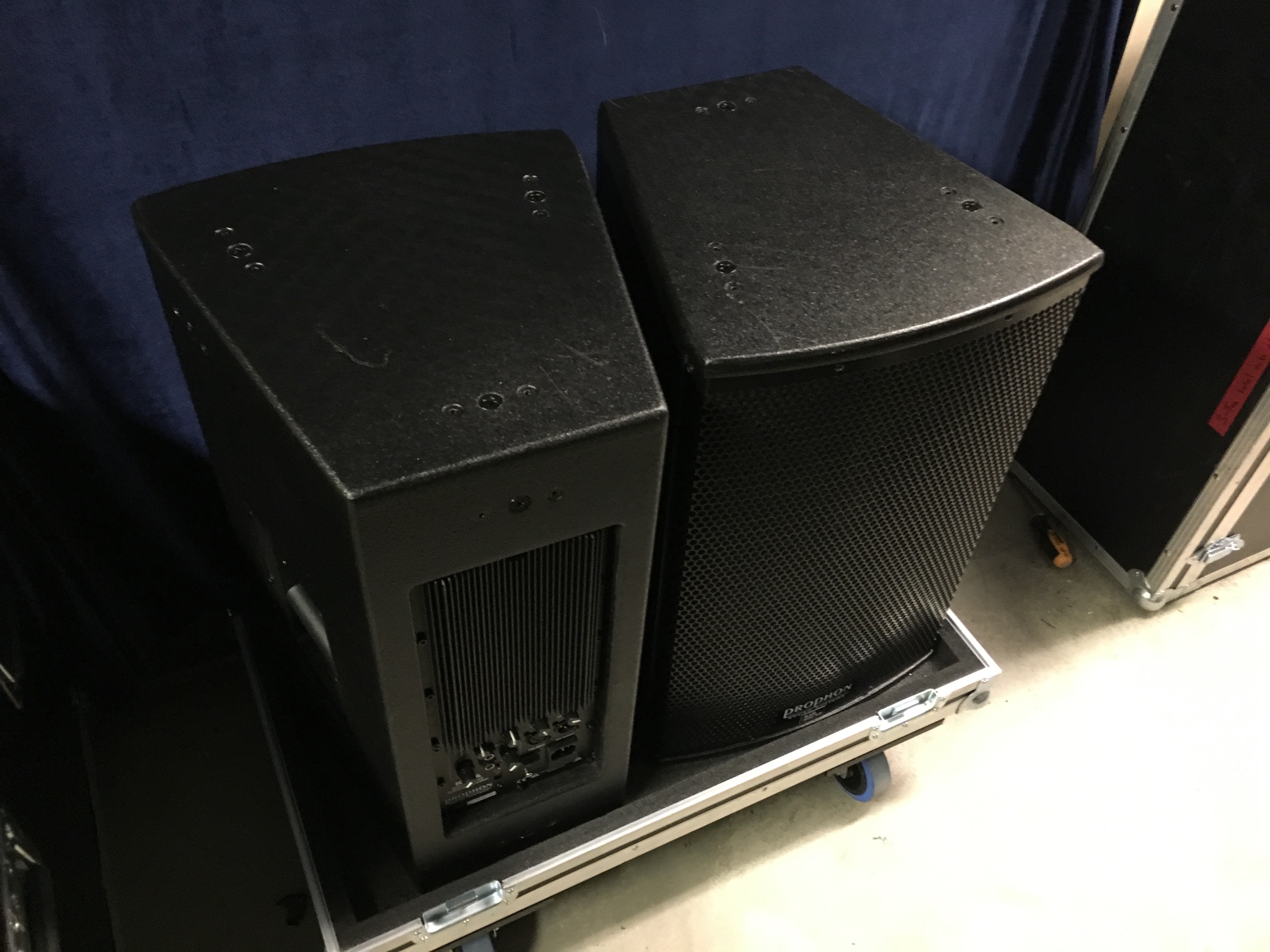 Jag har ett aktivt Prophon K2000 system till salu bestående av 2st K12A och 2st KS18A. Basarna har hjul på baksidan och case finns till topparna.