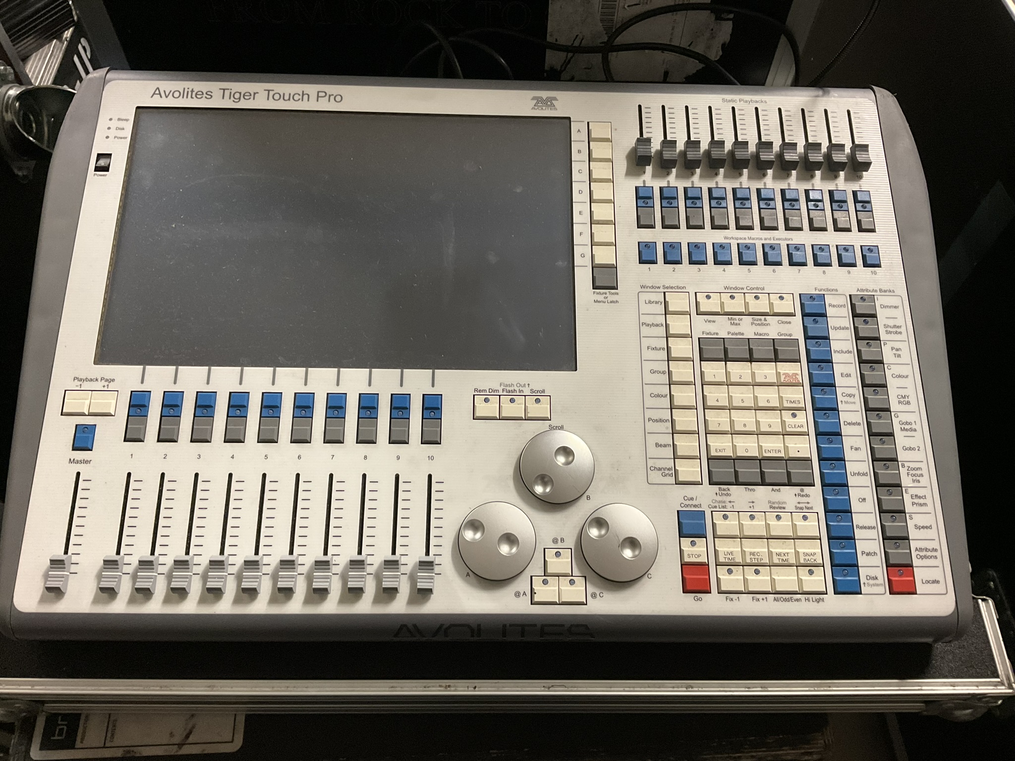 Tiger Touch Pro i original flightcase. Uppgraderat till 8GB RAM för att kunna köra Titan 15 (vilket det är uppgraderat till).