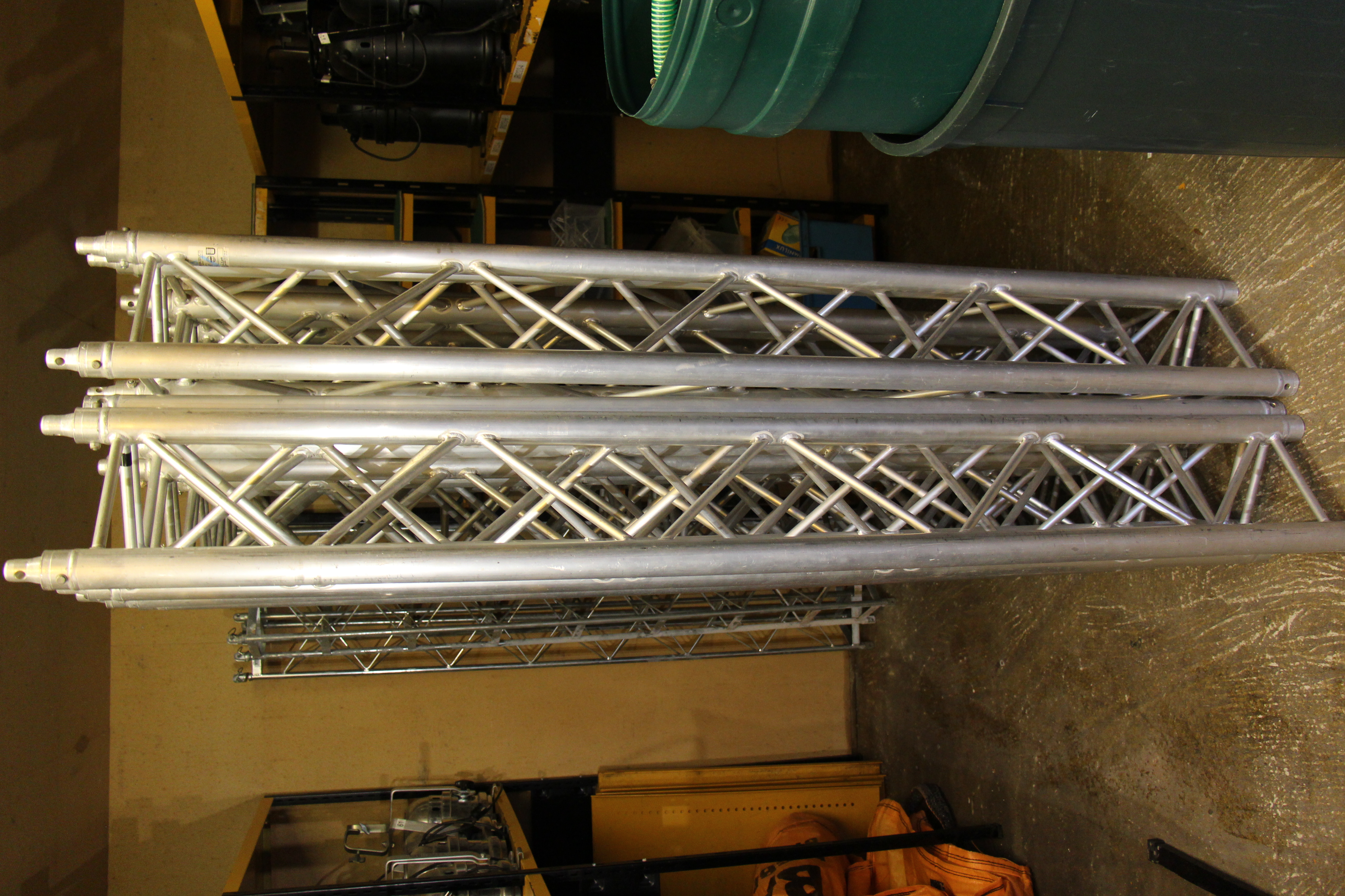Där finns en del tross kvar, totalt 30m. av Prolyte X30D. Komplett med konisk koppling och spigot.