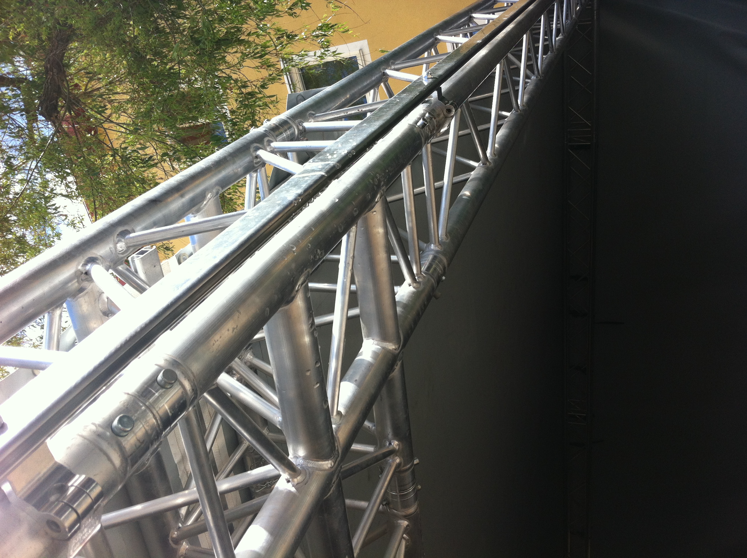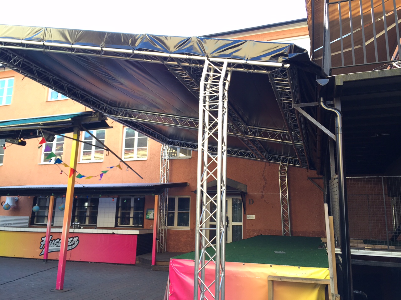 Det special gjorda trossbiten (Prolyte) som gör vinkeln på taket.
