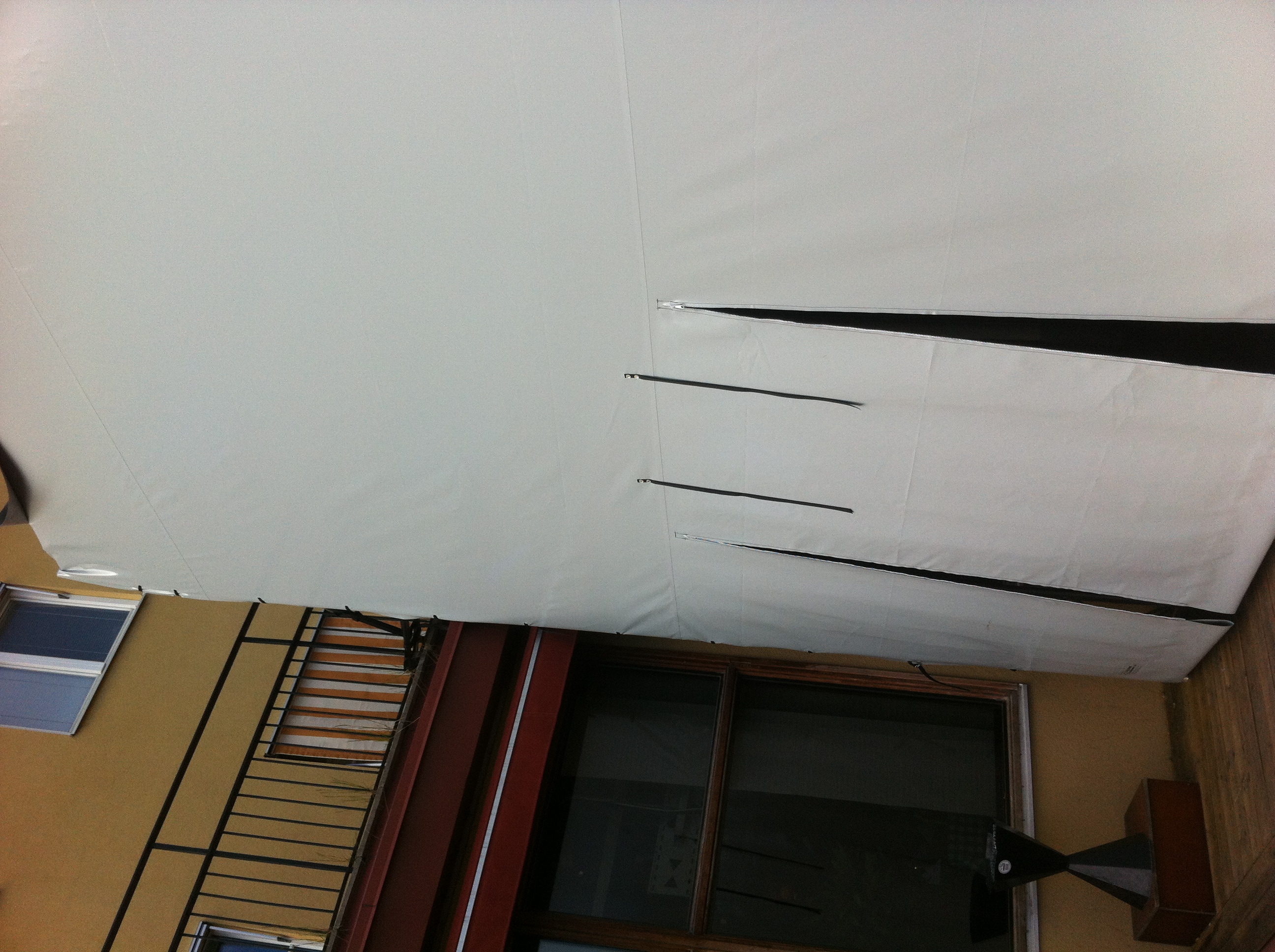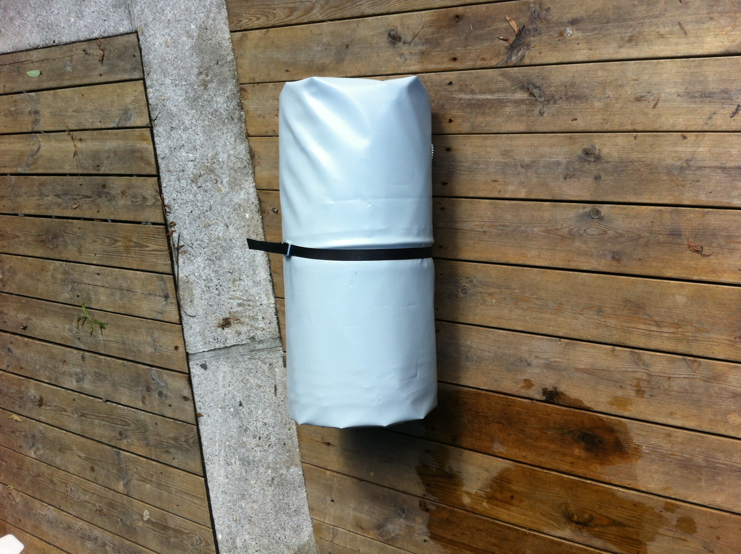 Lite svår bild! Men här hänger trosstaket i speciella remmar som gör att stativen lyfter från backen.