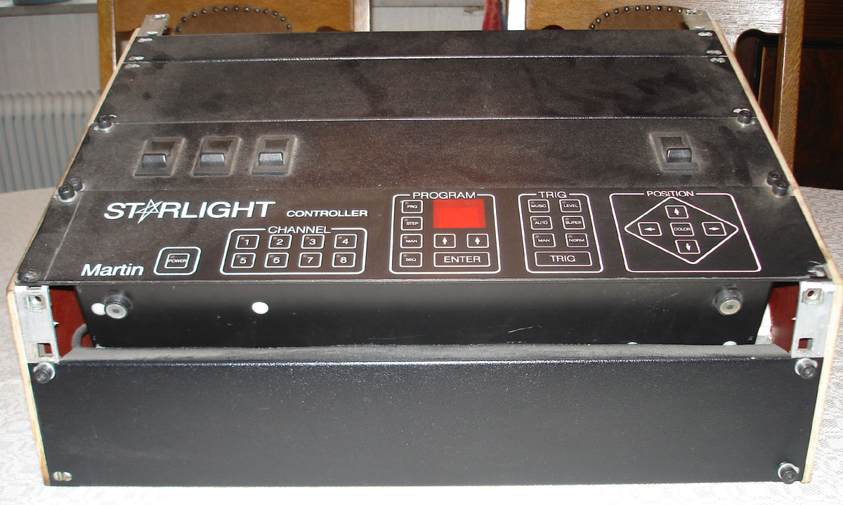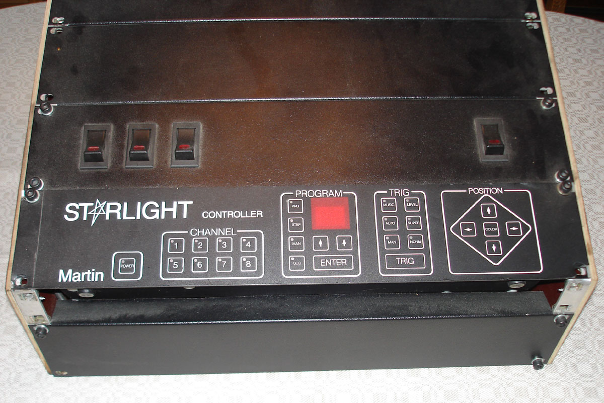 Starlight var Martins första rörliga armatur. Den består av åtta ”moving heads”, en servodrivenhet och en kontroller som liknar 2308 fast med piltangenter istället för joystick. Varje vifthuvud är uppbyggt av tre servon (samma modell som sitter i radiostyrda bilar). De förflyttar en 12v halogenlampa 180 grader i pan och titl, samt färgfiltret med tre färger plus vit. Ett system utan trafo till lamporna (man kunde själv välja effekten) lär ha kostat dryga 60.000, och det lär ha varit –90 eller –91.