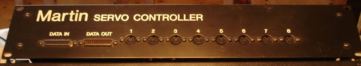 Man kan kaskadkoppla flera servoförstärkare till en Starlight-styrenhet och därigenom styra fler huvuden, men jag tror inte att man då kan adressera alla separat, jag vill minnas att de bara repeterar i grupper om åtta. Från kontrollern är det parallellstyrning ut med 25-polig bandkabel och DB25-or och kabeln kan ges ansenlig längd vid behov, sedan jackas huvudena in i servoförstärkaren med 5-pol DIN vilka också tål förlängning.