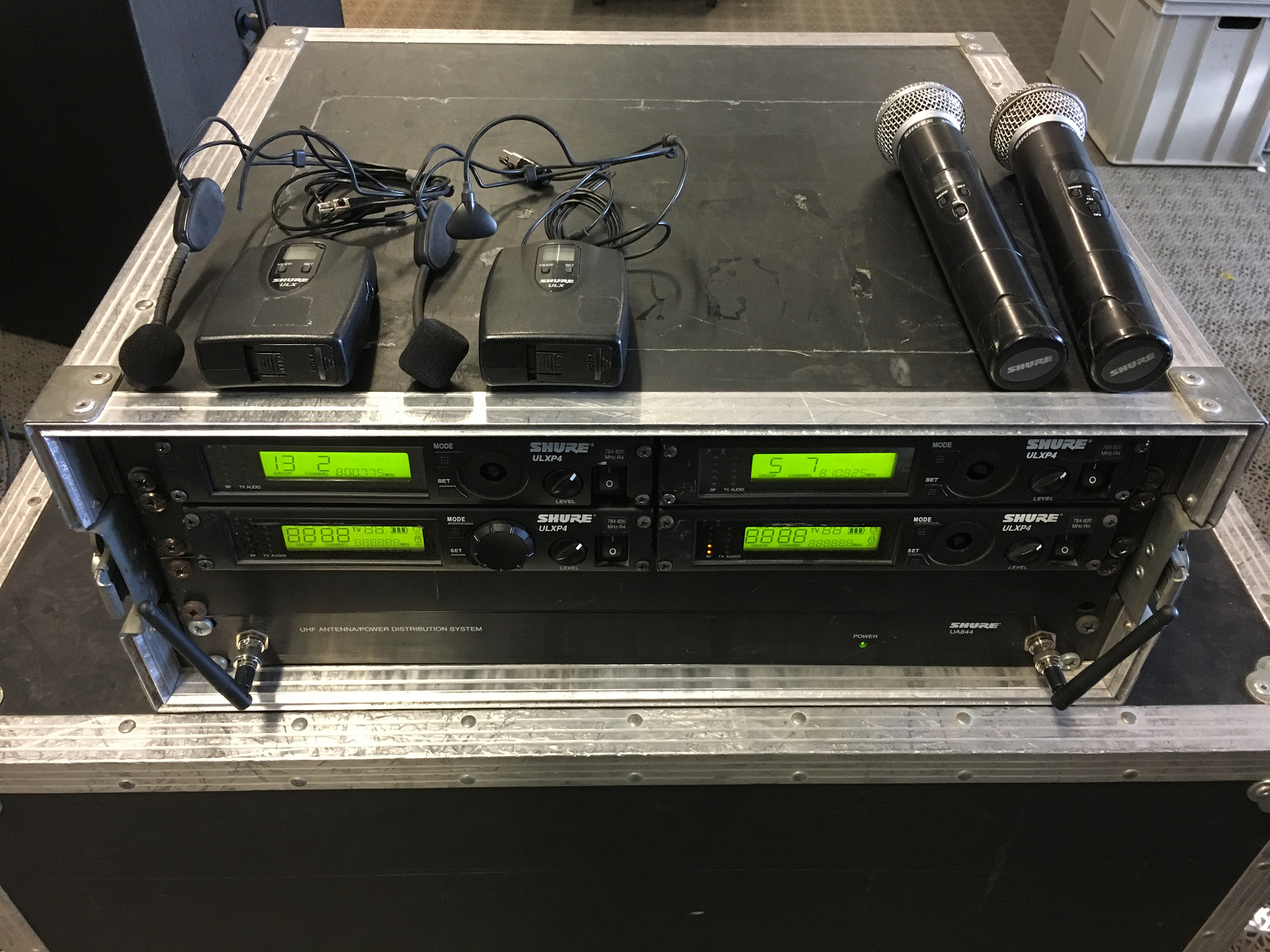 Säljer fyra trådlösa mikrofonsystem med Shure ULX R4 784-820. Paketet innehåller: