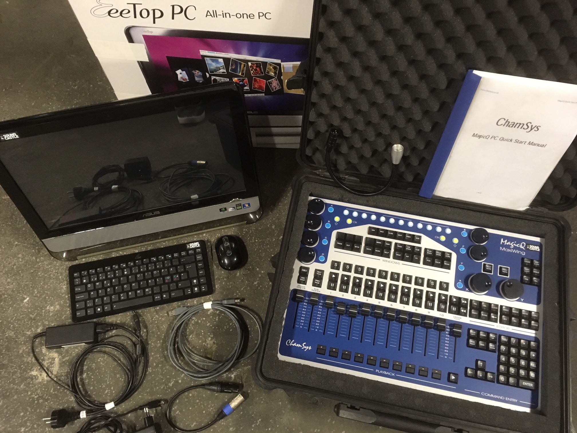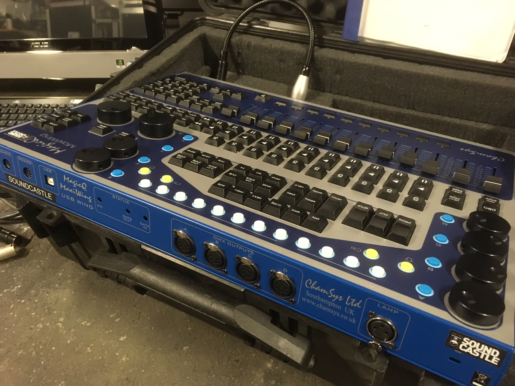 Chamsys Maxi vinge med 4 x DMX-universum. Kördator med 22 tums touchskärm samt case till bordet.