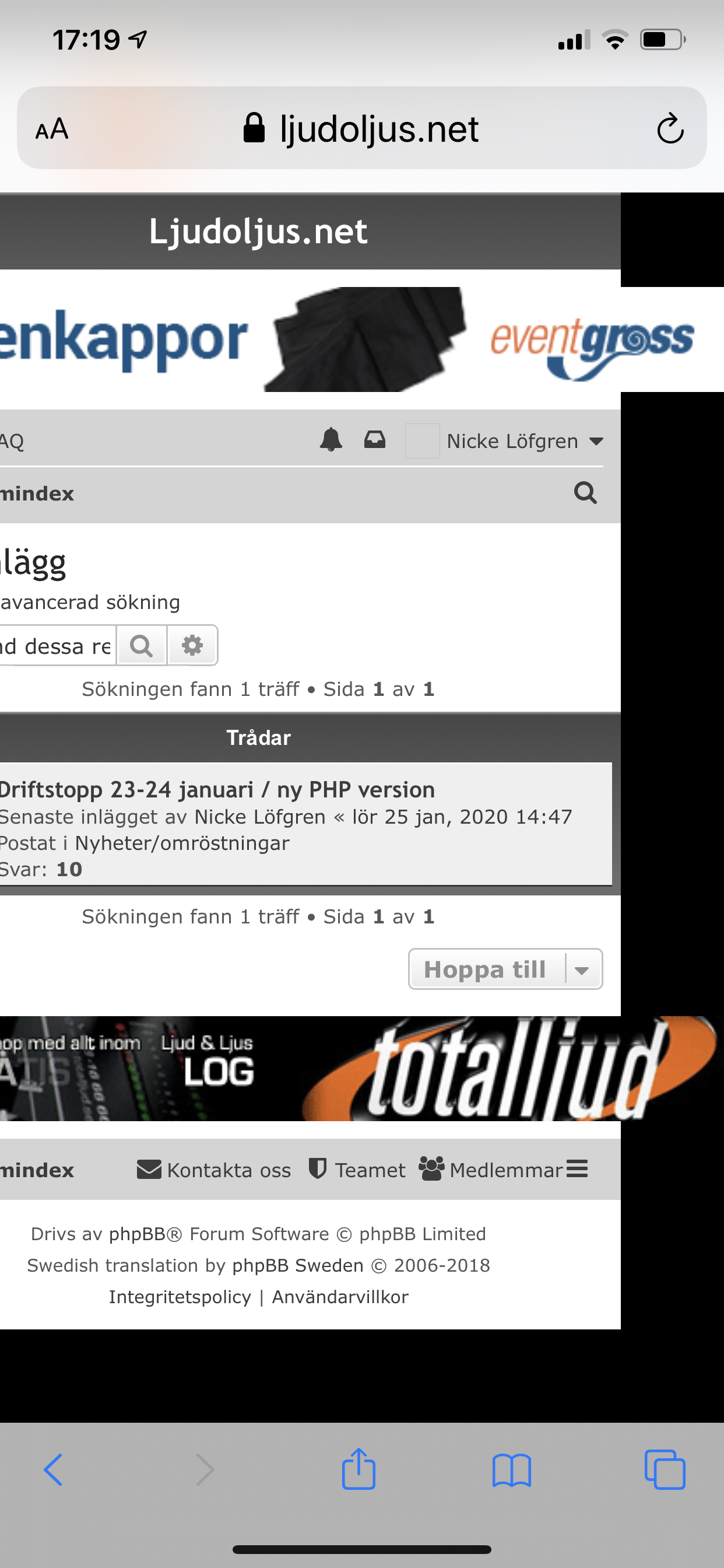 Tack för info. Ja, har sett det också. Har försökt i ett antal timmar att få det att fungera, men inte fått till det ännu. I mobilen så skulle forumet behöva breddas lite, så att det är lika brett som annonserna som är 468 pixlar. Så hade varit lagom att visa minst 500 pixlar i bredd. Vrider man på telefonen ser det ju bra ut.Nicke Löfgren skrev: ↑lör 25 jan 2020, 17:20Hittade ett litet fel!