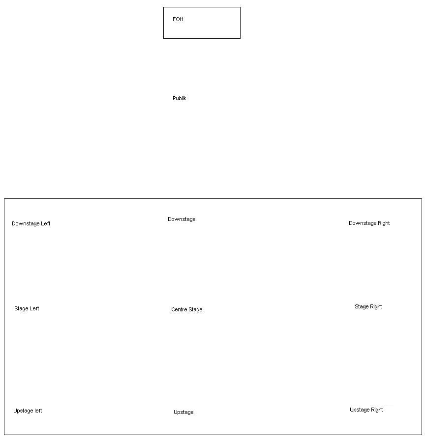 Upstage är i Scenens Bak kant och Downstage är i Scenens Framkant.