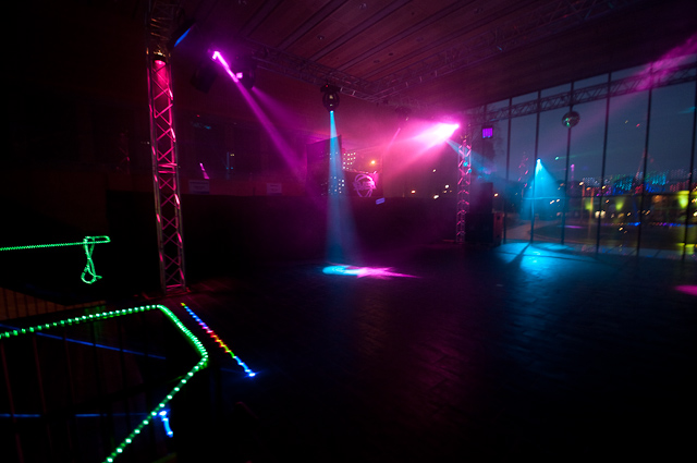 En film från GSL som visar lasrarna och leddropsen på det stora dansgolvet