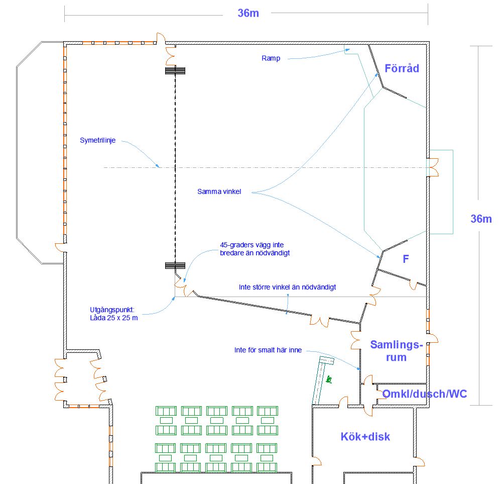 Ang. den bakre väggen kan det vara klokt att fokusera ljudanläggningens spridning så att den täcker precis lagom långt bak till väggen i nederkant, och sedan ha ett delay-system som tar vid bakåt när väggen skall öppnas.