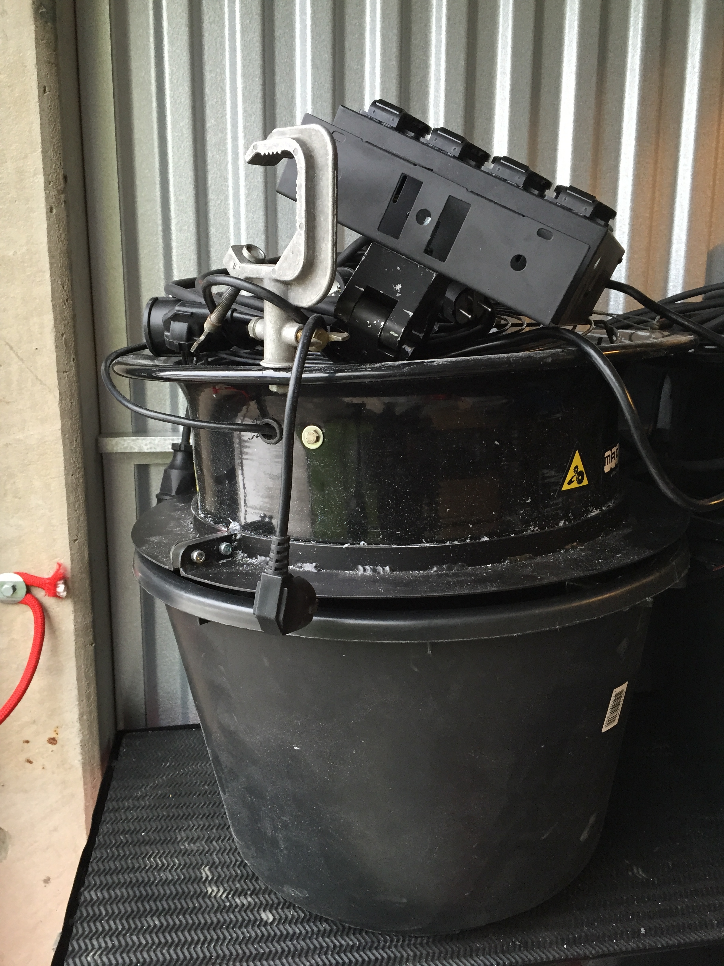 Vi har gjort en del justeringar så att de ska blåsa ut snön snyggt vilket de inte gjorde i originalutförandet. Vi har även modifierat behållarna så att man kan fylla dem med extra mycket snö/konfetti. Eftersom de är DMX-styrda kan man enkelt reglera hur kraftigt snöfall man vill ha.Vi har även byggt in hakfästen för trossmontering.