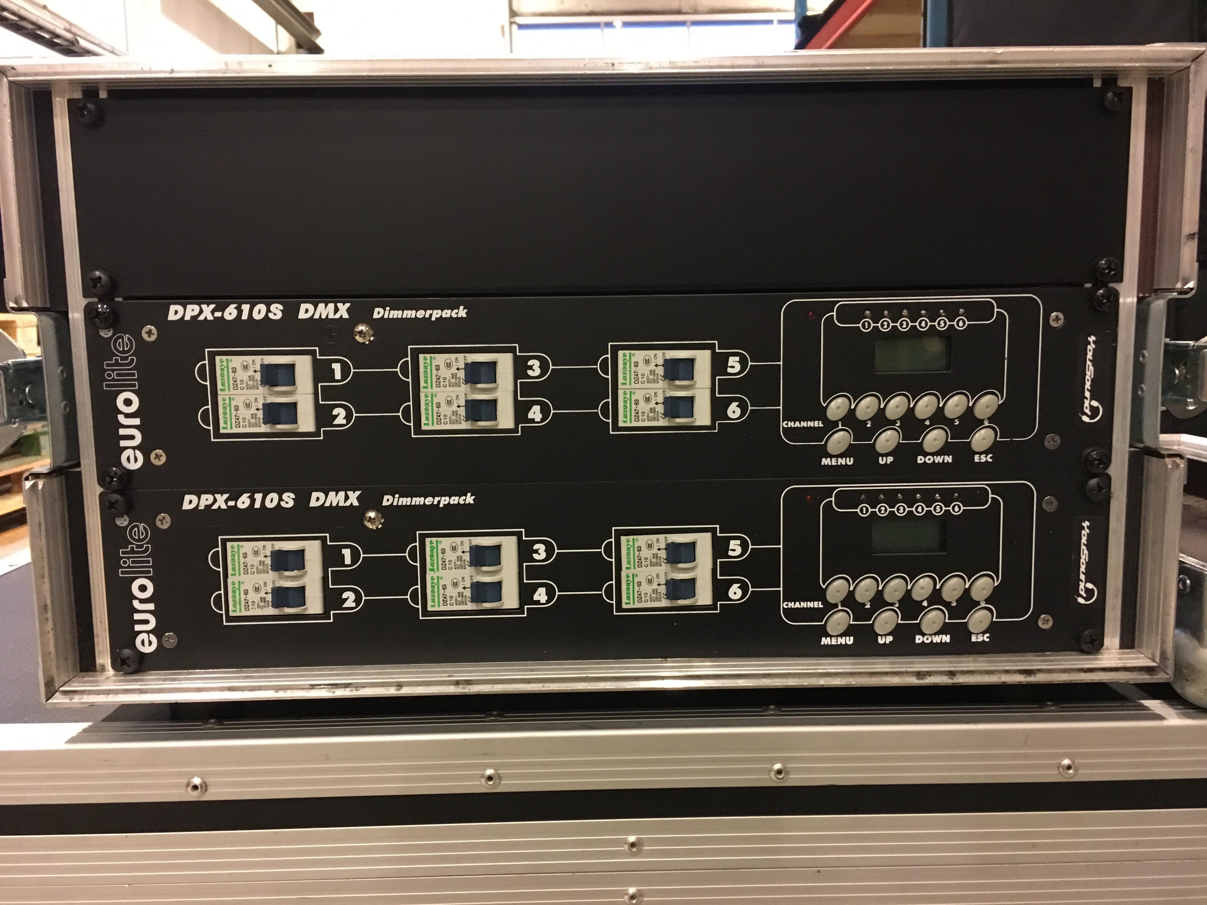 2 x Eurolite DPX-610S DMX Dimmerpack (vid köp av båda ingår racket de sitter monterade i) - 2000:-/st *SÅLDA*