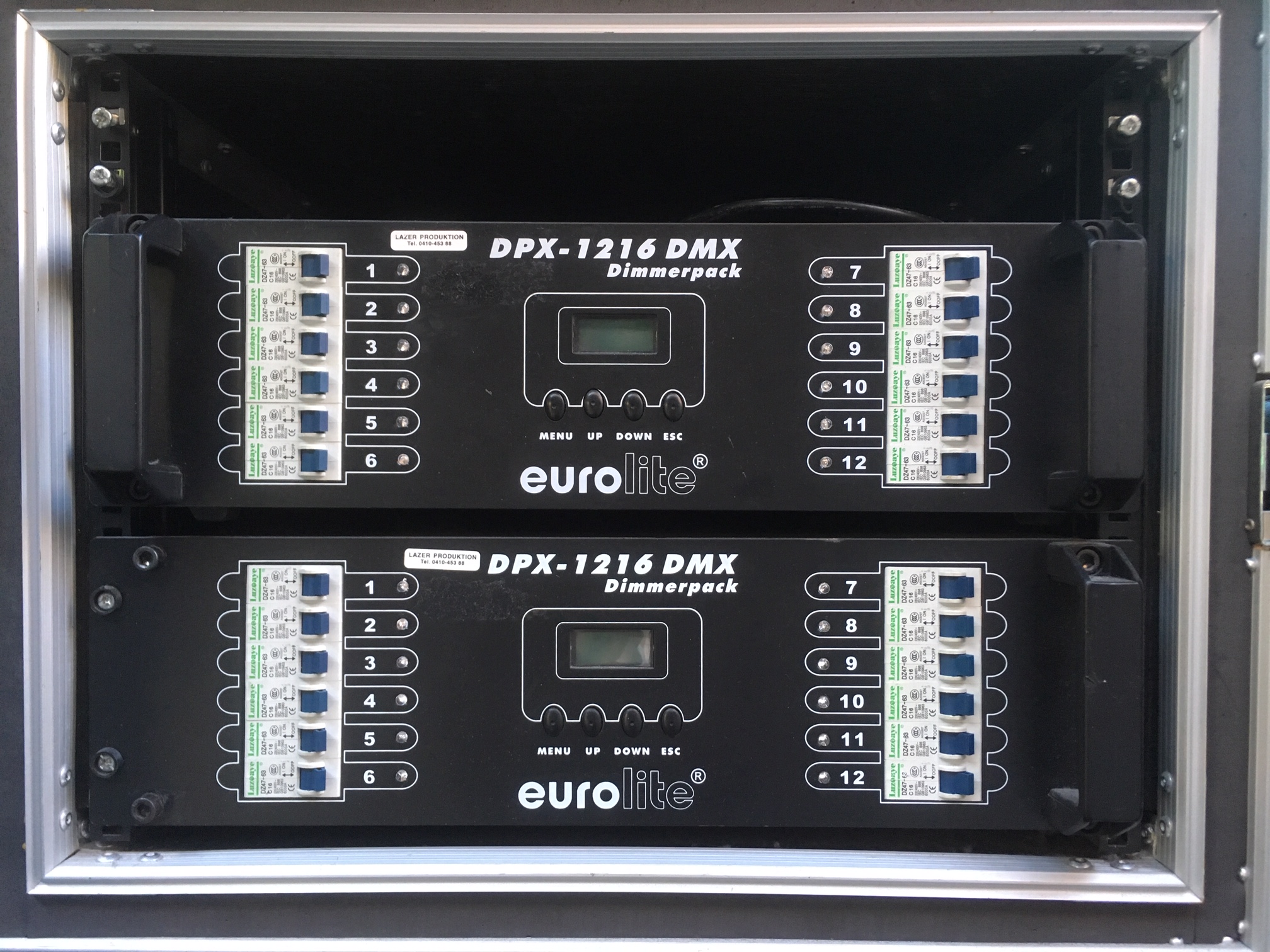 Säljer 2 st Eurolight 12*16A dimmer med socca ut inkl. 4st socca piskor honor inkl case