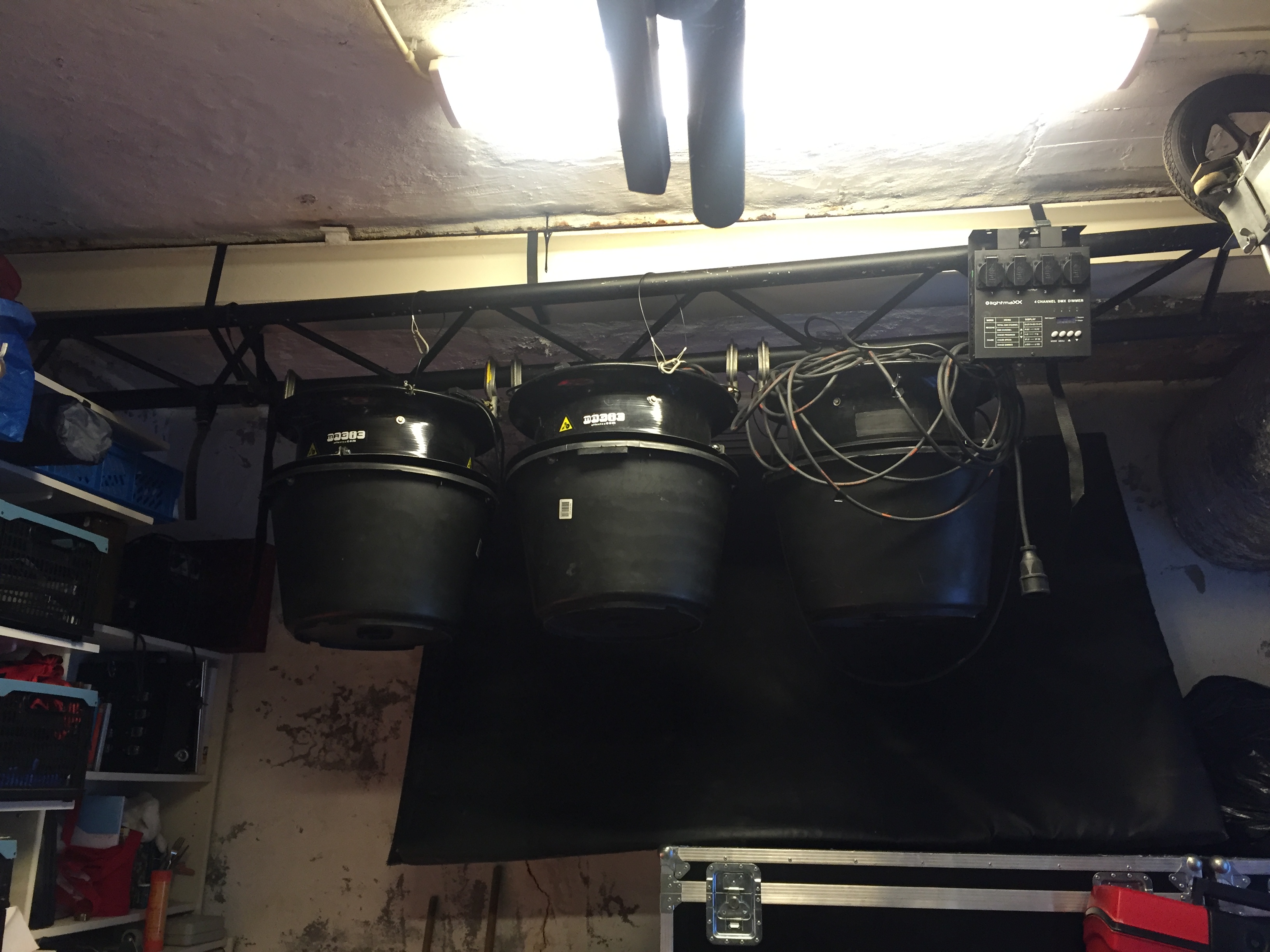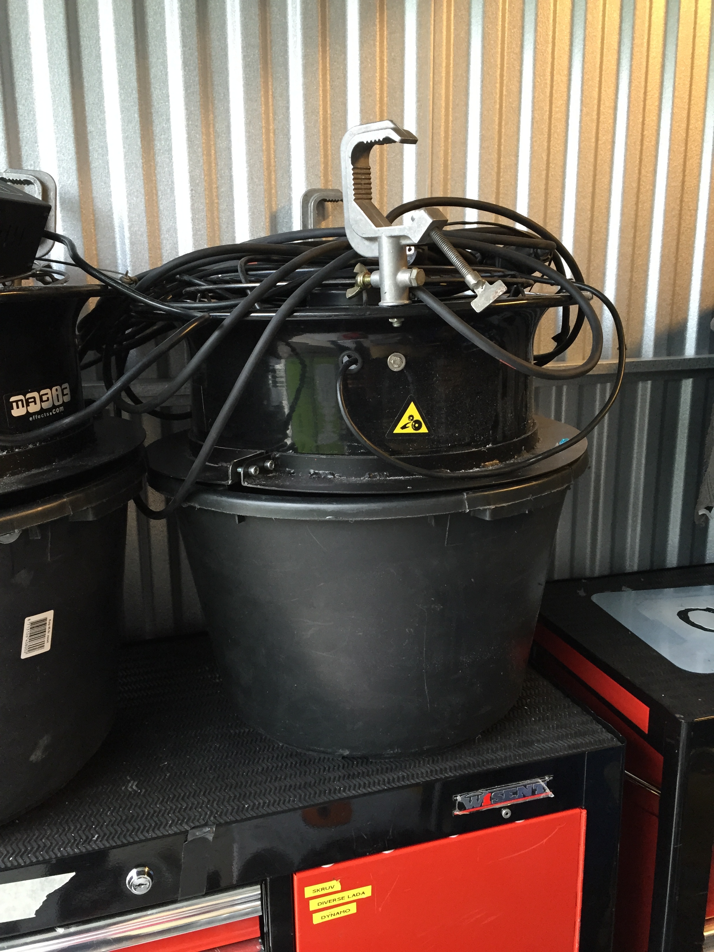 Vi har gjort en del justeringar så att de ska blåsa ut snön snyggt vilket de inte gjorde i originalutförandet. Vi har även modifierat behållarna så att man kan fylla dem med extra mycket snö/konfetti. Eftersom de är DMX-styrda kan man enkelt reglera hur kraftigt snöfall man vill ha.Vi har även byggt in hakfästen för trossmontering.
