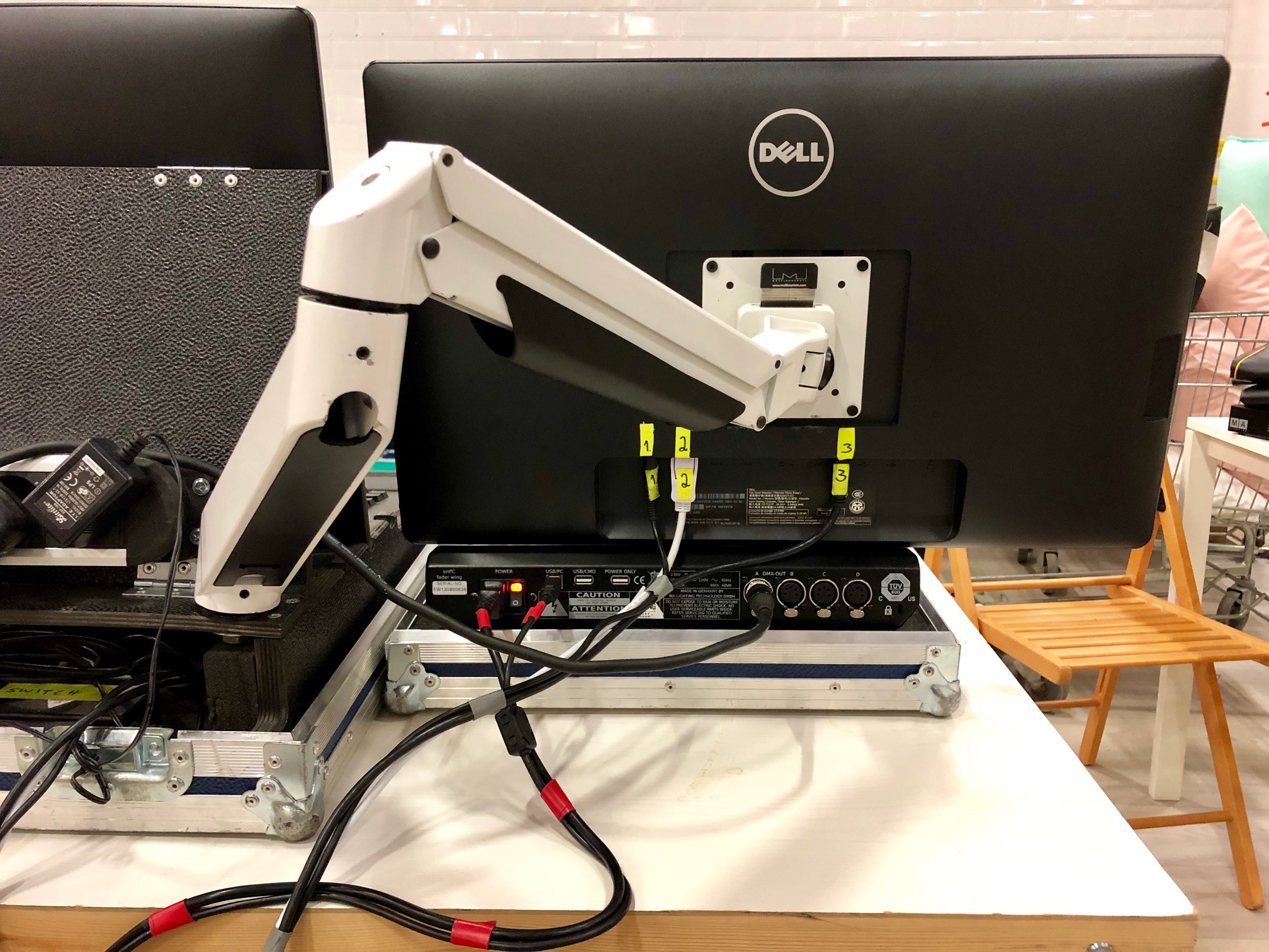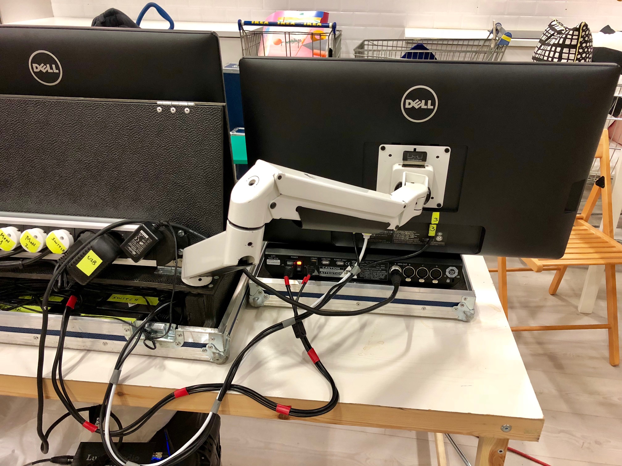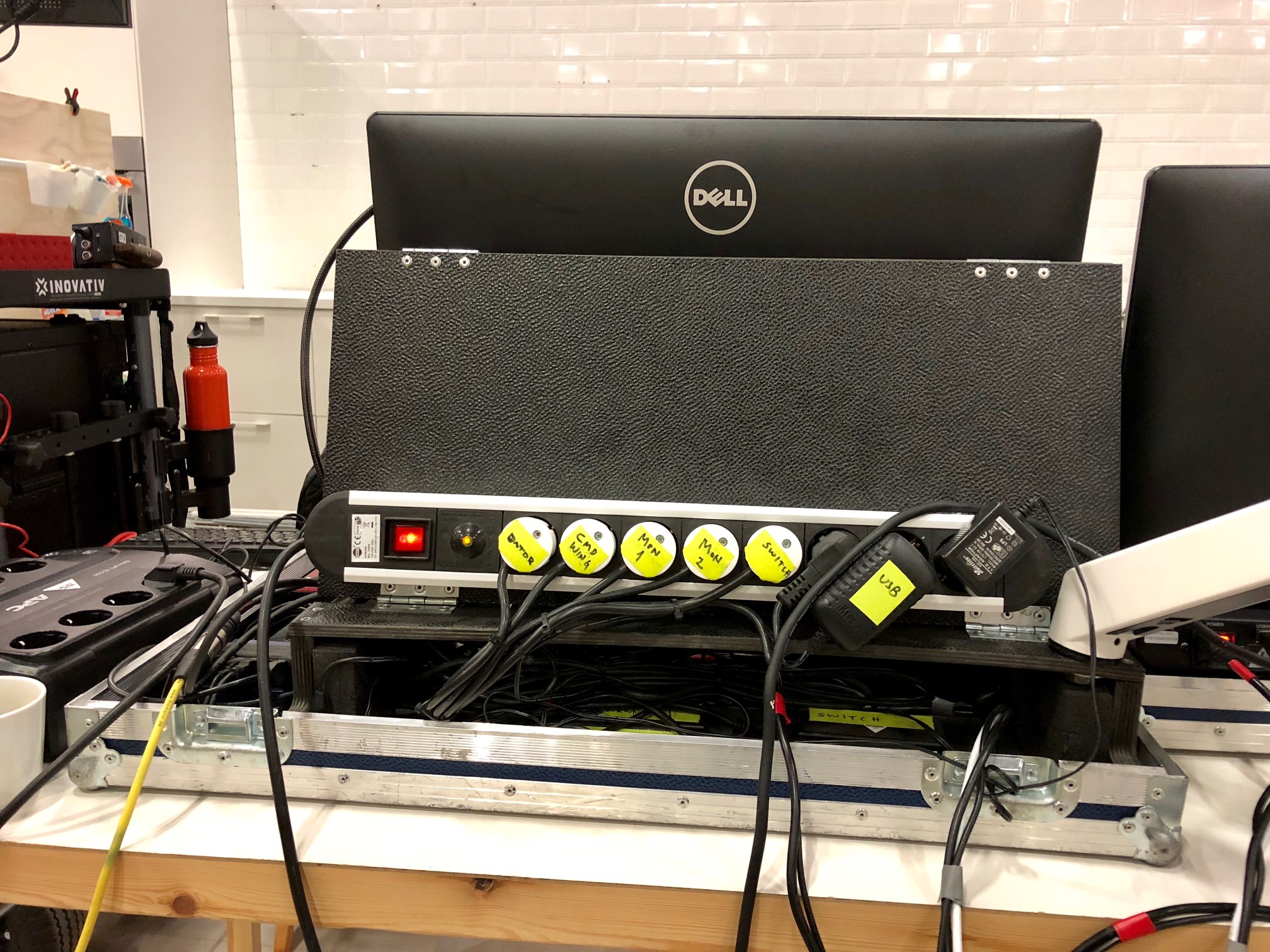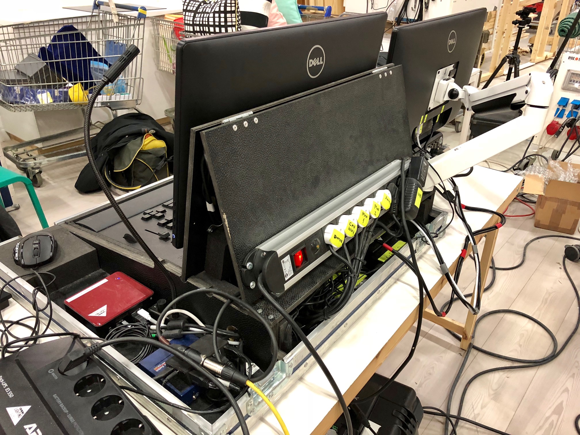 Monitor två går löst i en Peli tillsammans med en Vesa Gas lift arm från Multibrackets.