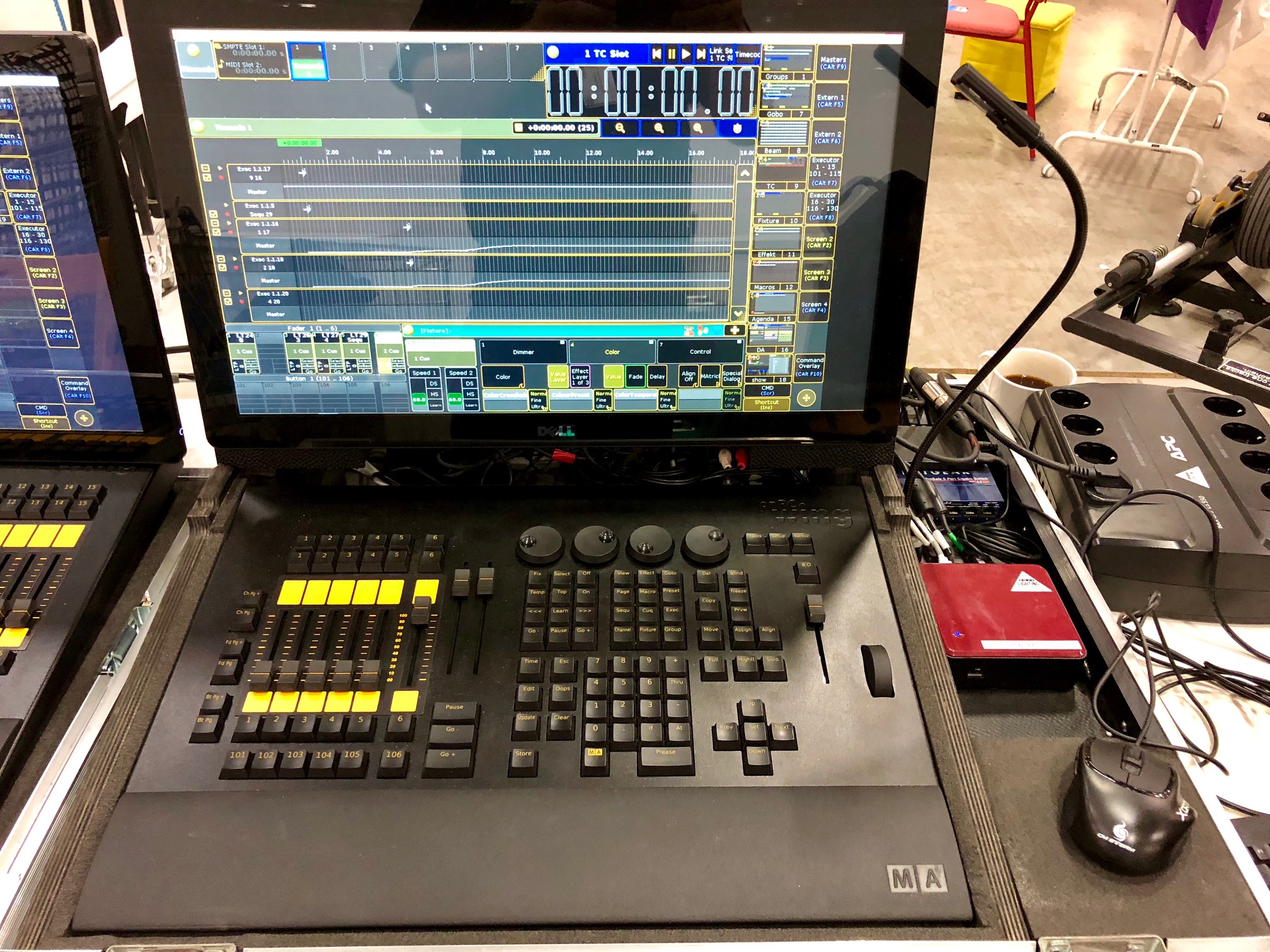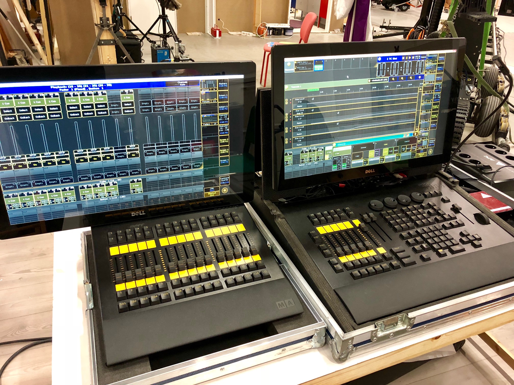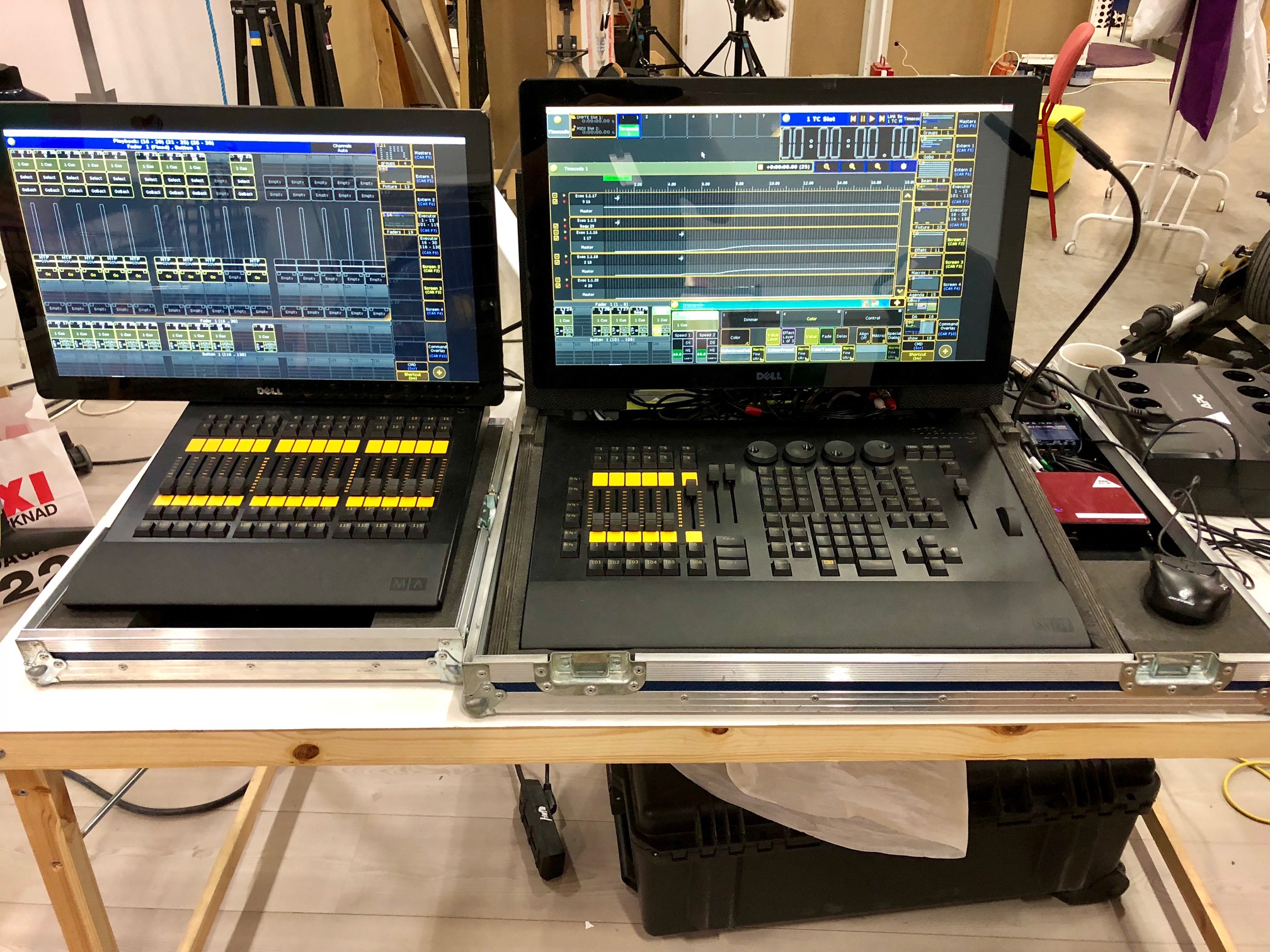 Det består av en ComandWing, en FaderWing, Två 21" Touch skärmar, minidator med Tangentbord och mus, switch & Litlite
