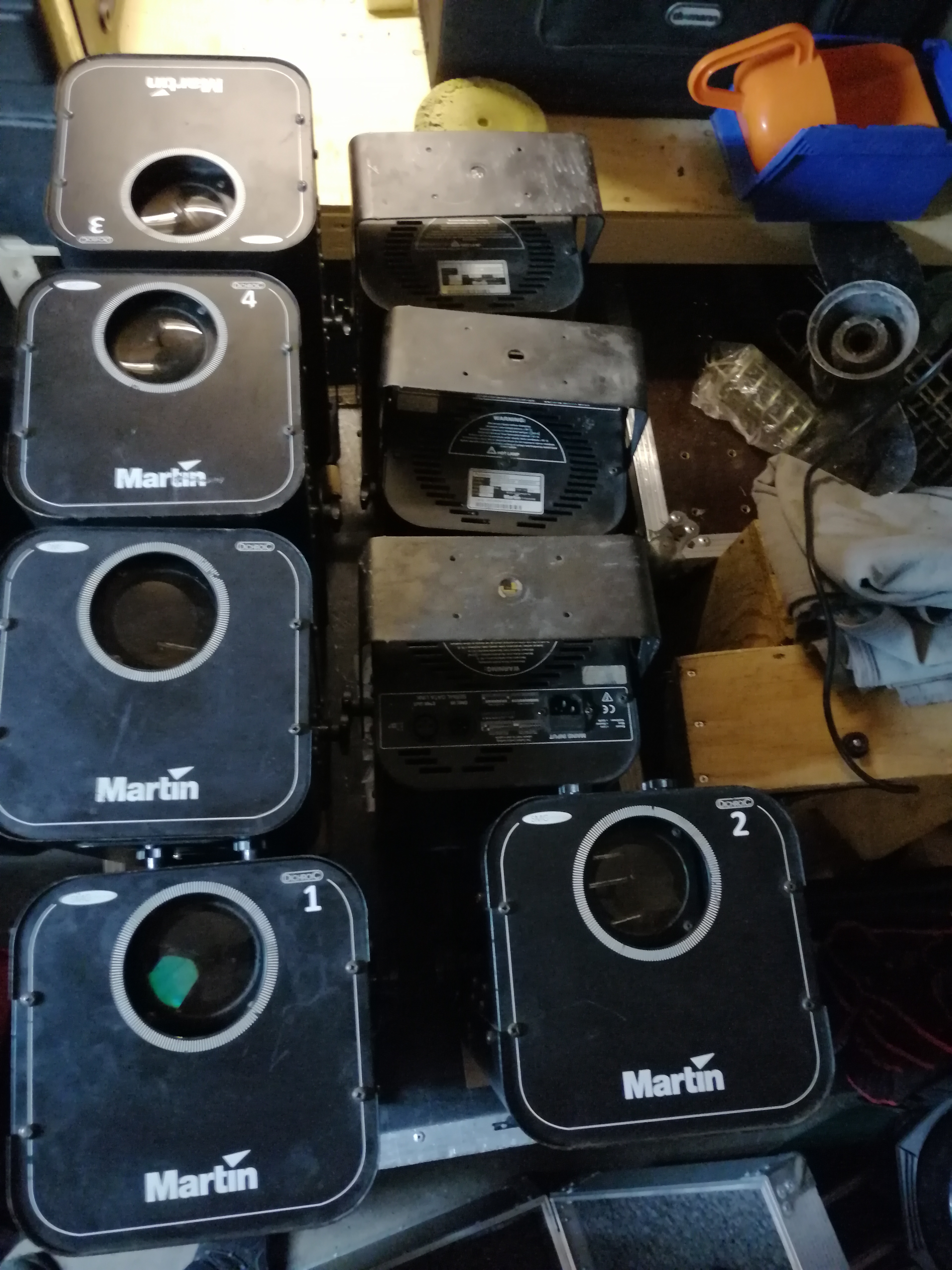 Alla ska fungera förutom 2st som har trasiga lampor. Mycket effektfulla och dmx-styrda alt. automatiskt ljudstyrt program.