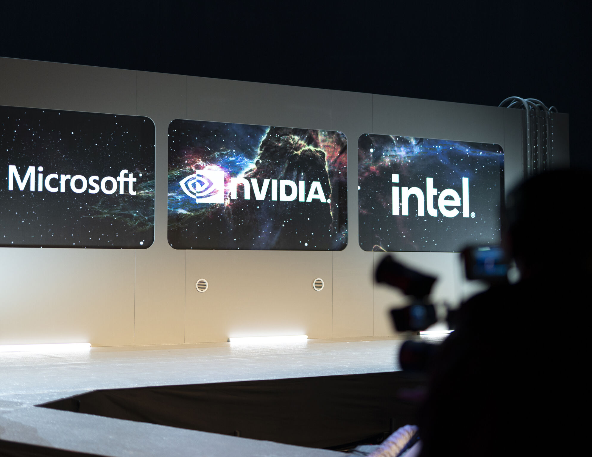 Nr1. Väggar till "rymdskepp". 10m breda, 2,4m höga. Byggd i moduler med utsågade ovala fönster där vi valde att sätta LED-skärm. Allt står i en specialbyggd vagn med hjul för enklare transport. Målade i "rymdgrå" färg. Kostade ca 32' ex moms att ta fram och är byggda och målade av en professionell snickarfirma.