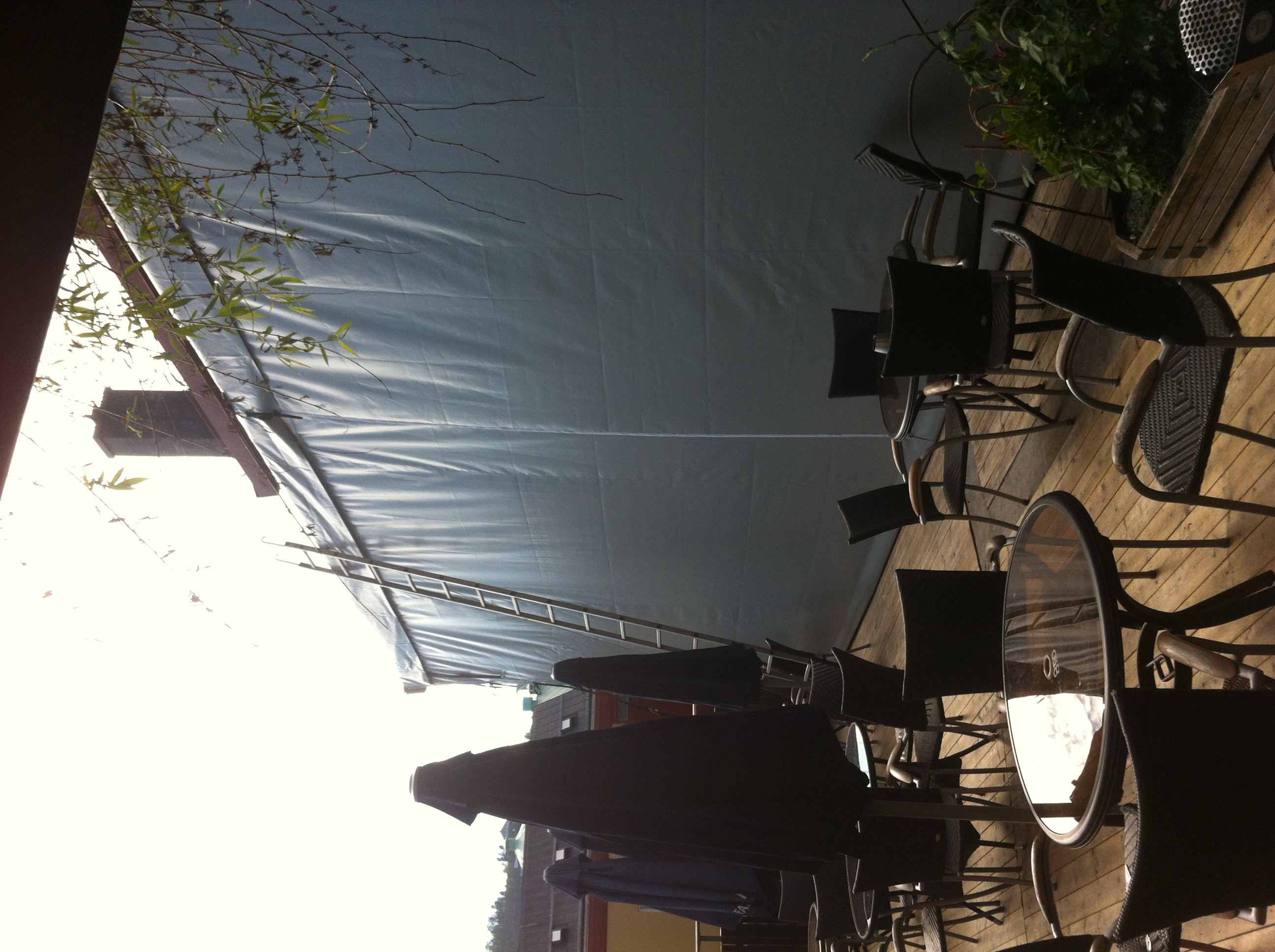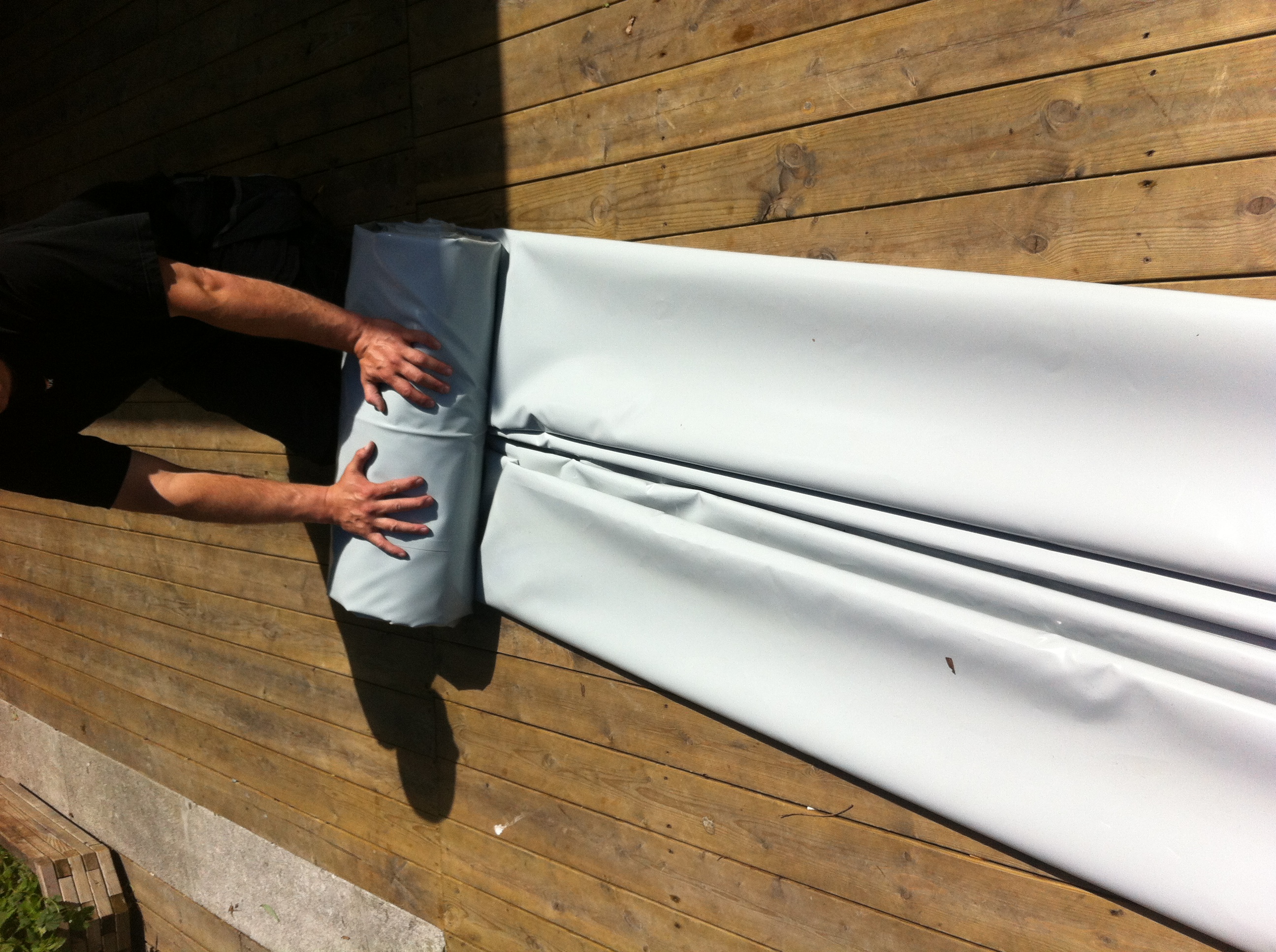 Lite svår bild! Men här hänger trosstaket i speciella remmar som gör att stativen lyfter från backen.