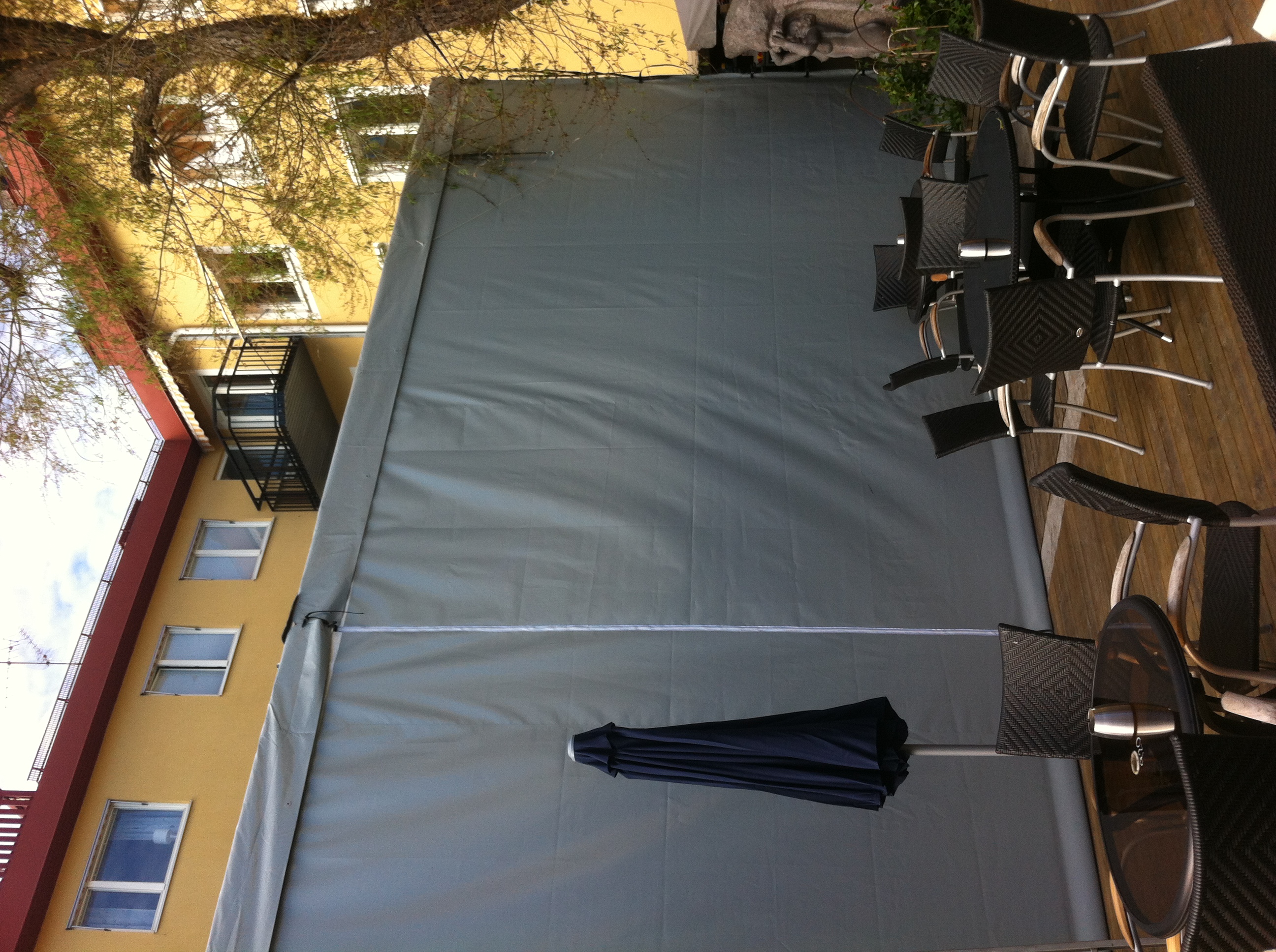 Jonas, jag har precis beställt två kapell på 9x6 och 7x5, i svart 700g PVC. 75:-/kvm, dock med öljetter.
