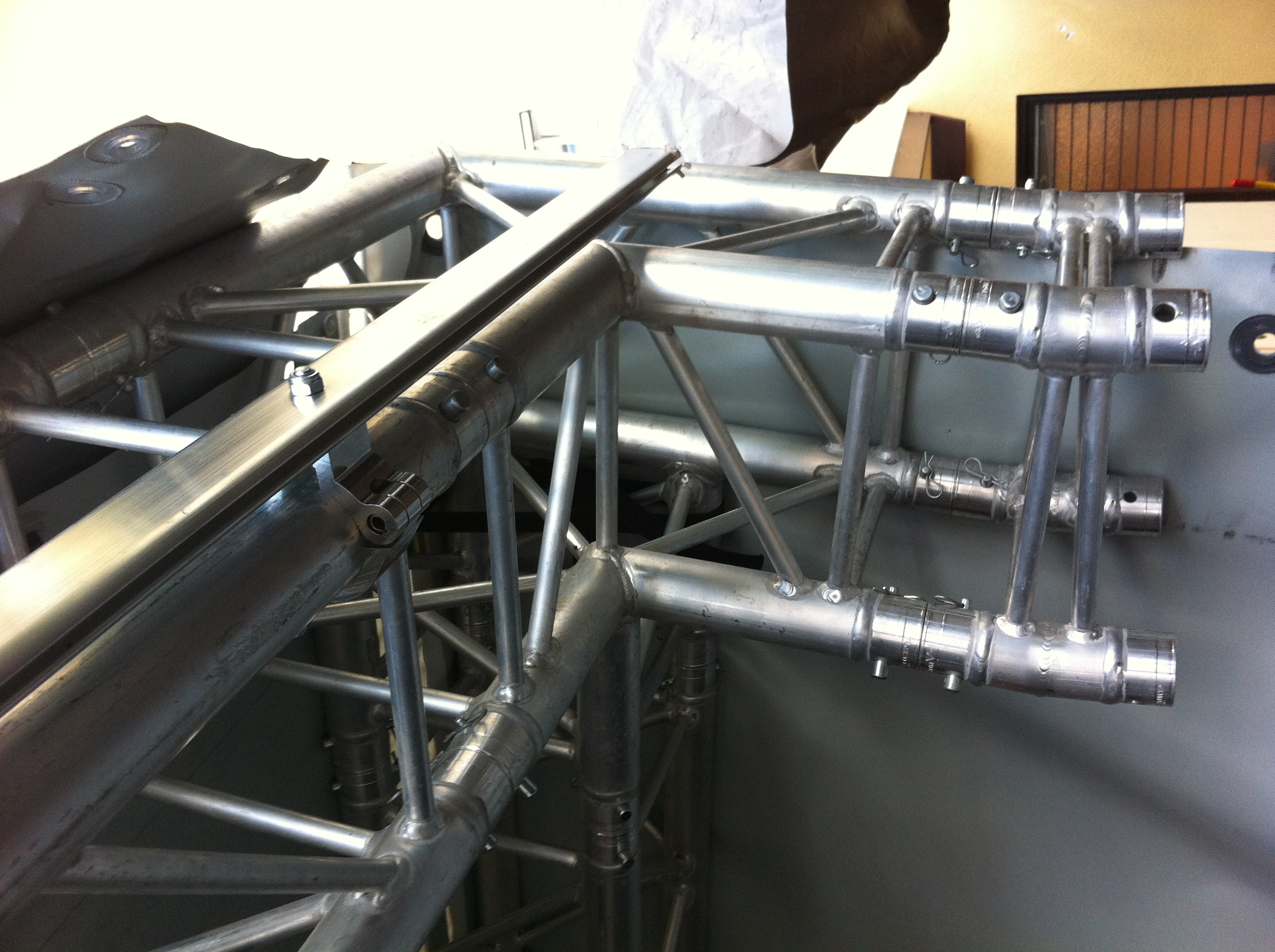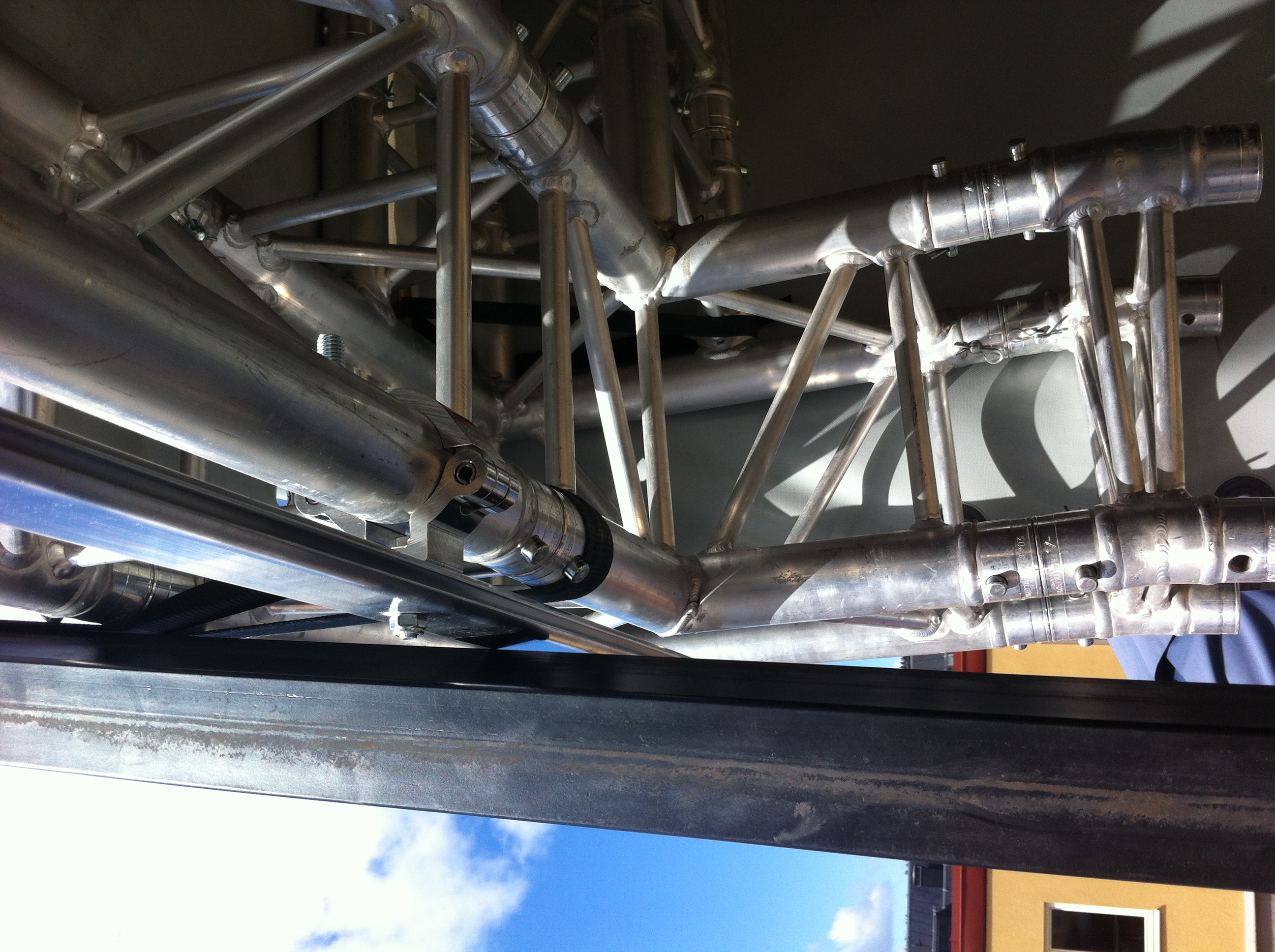 Det special gjorda trossbiten (Prolyte) som gör vinkeln på taket.