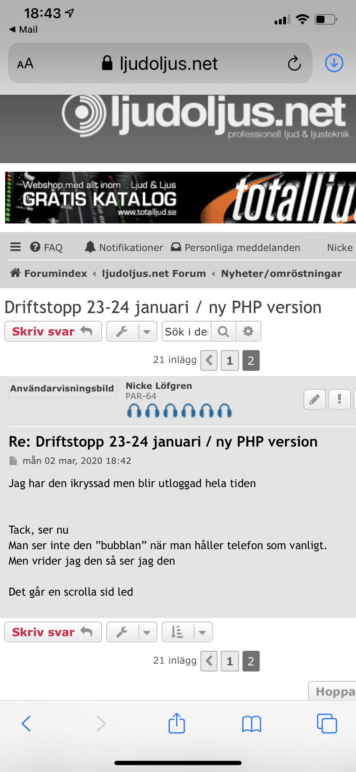 Först så var forumet ännu smalare i mobilversionen, men då stack våra banners ut utanför, så valde att bredda forumet lite så att de fick plats. Så nu får man zooma ut lite för att se allt. Inget är optimalt tyvärr, svårt att få det att fungera perfekt för alla olika upplösningar. Men det har ändå blivit bättre än med den gamla forumsversionen.