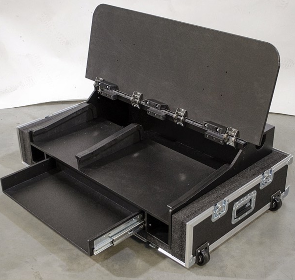 Ska börja med att bygga om den (inredning, butterflylås mm), sen köpte jag 2 st Asus 19" touchskärmar som får åka i plastväskor från Clas Ohlson.