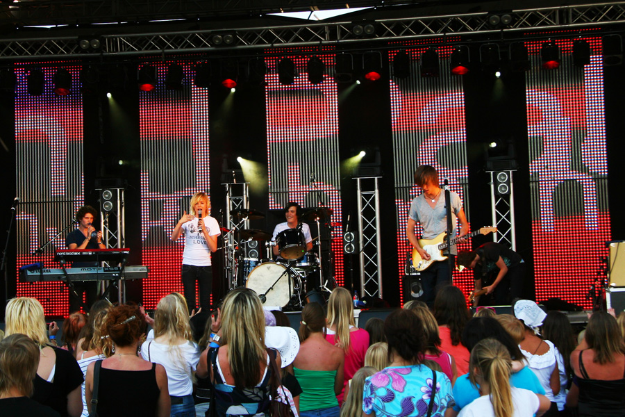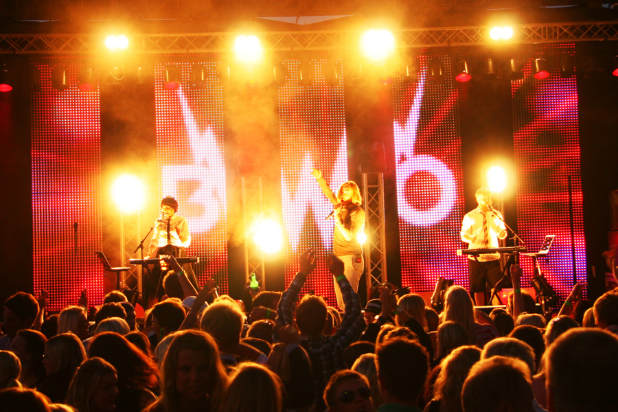 I helgen levererade vi teknik till Sommarparty i Ljungby, där Johan Palm, BWO, Lillasyster och Melody Club stod på scen. Förutom scen samt ljud- och ljusteknik passade vi även på att plocka med våra nya LC-paneler från Martin för att testa lite. Resultatet blev över förväntan - jag kunde aldrig tro att det var så barnsligt roligt att få inkludera LED i scenbilden =)