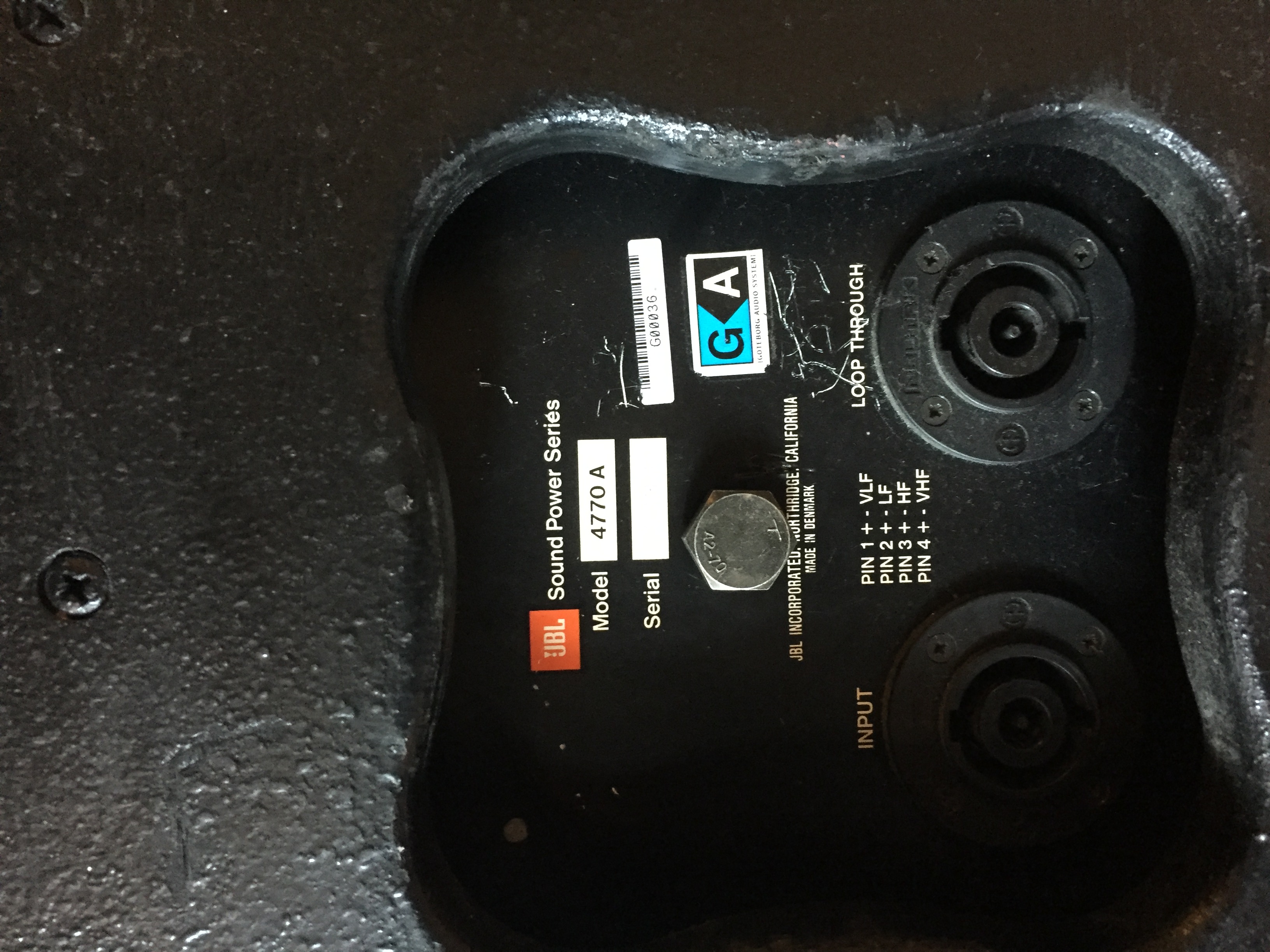 Bestyckade med 3 tumsdriver och 2st JBL 2226H i varje låda.