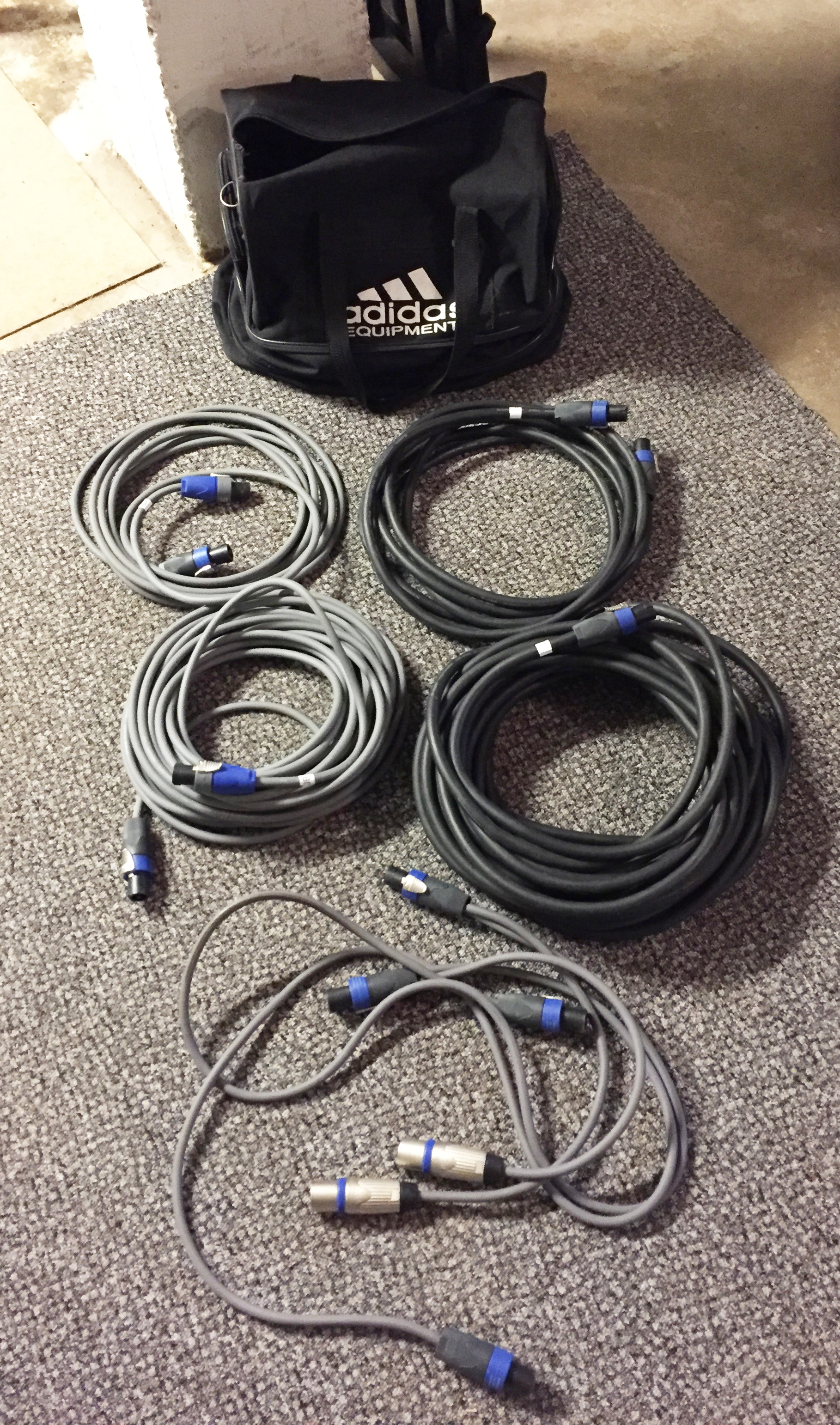 4-ledad speakon till topparna (ca 5 + 15 meter)
