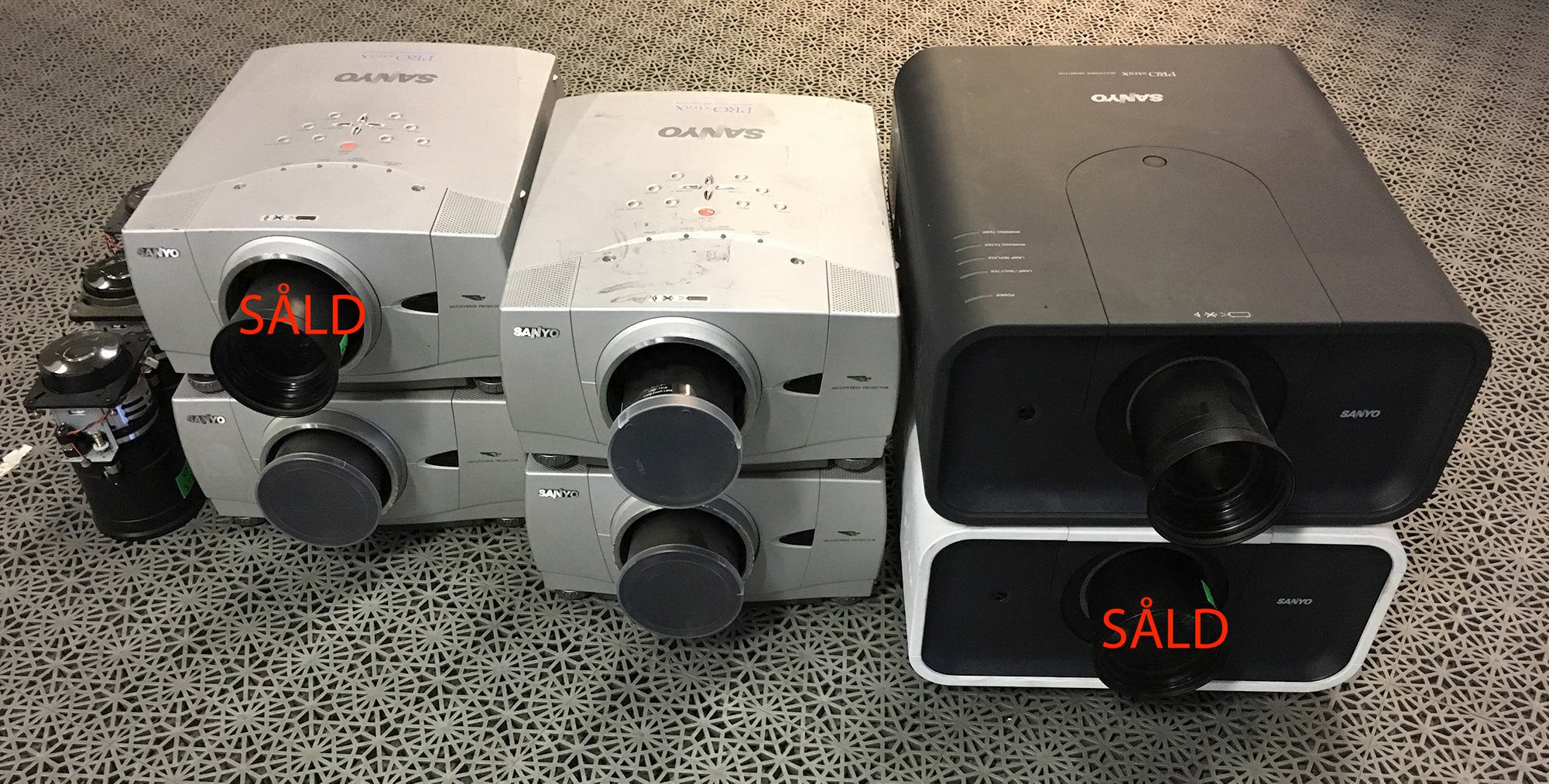 Pris för 4st projektorer med 6st linser samt kablage: 15.000:- +moms eller högstbjudande