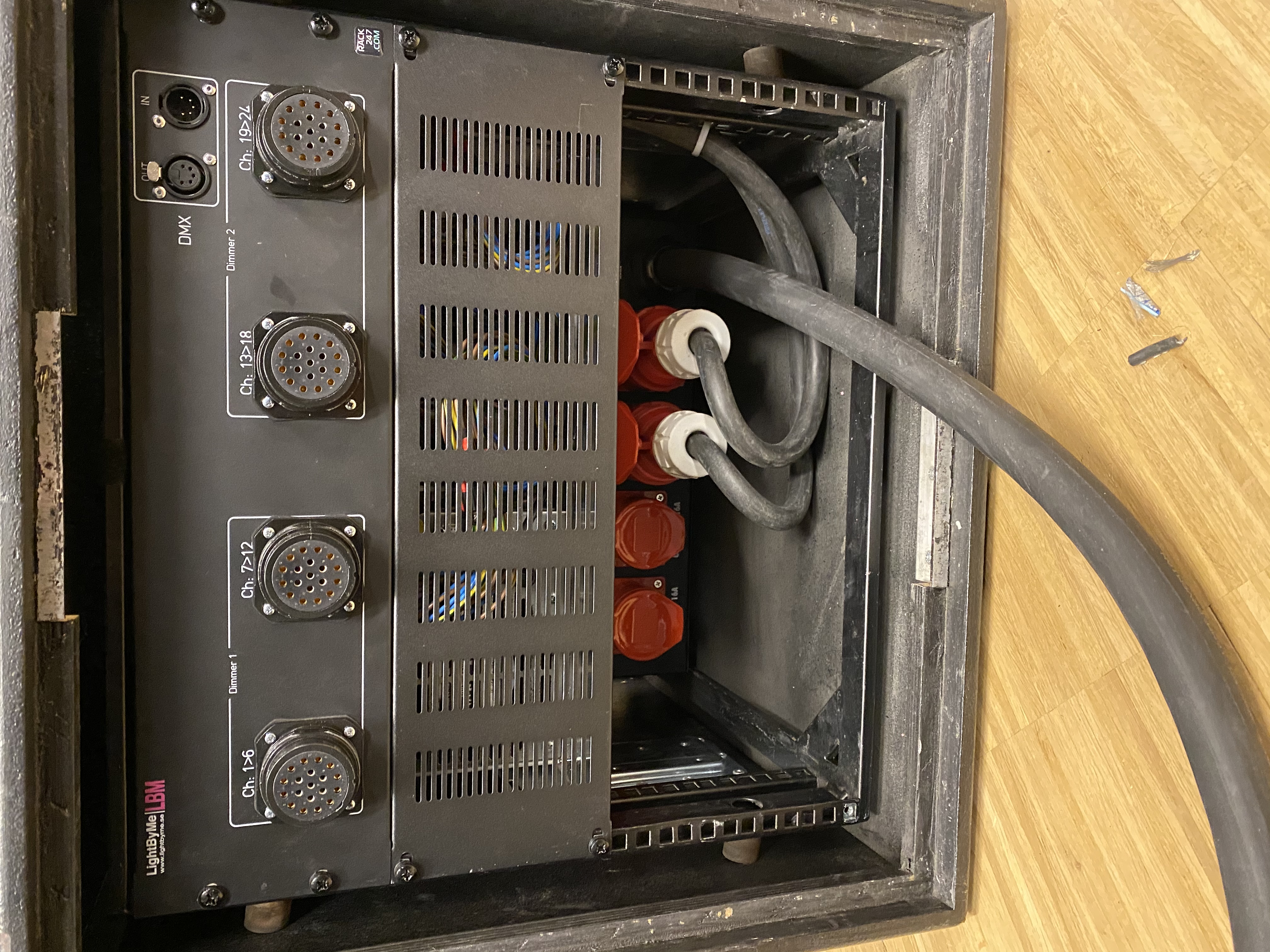 Panel på baksidan med 4x socapex ut samt DMX in/ut.