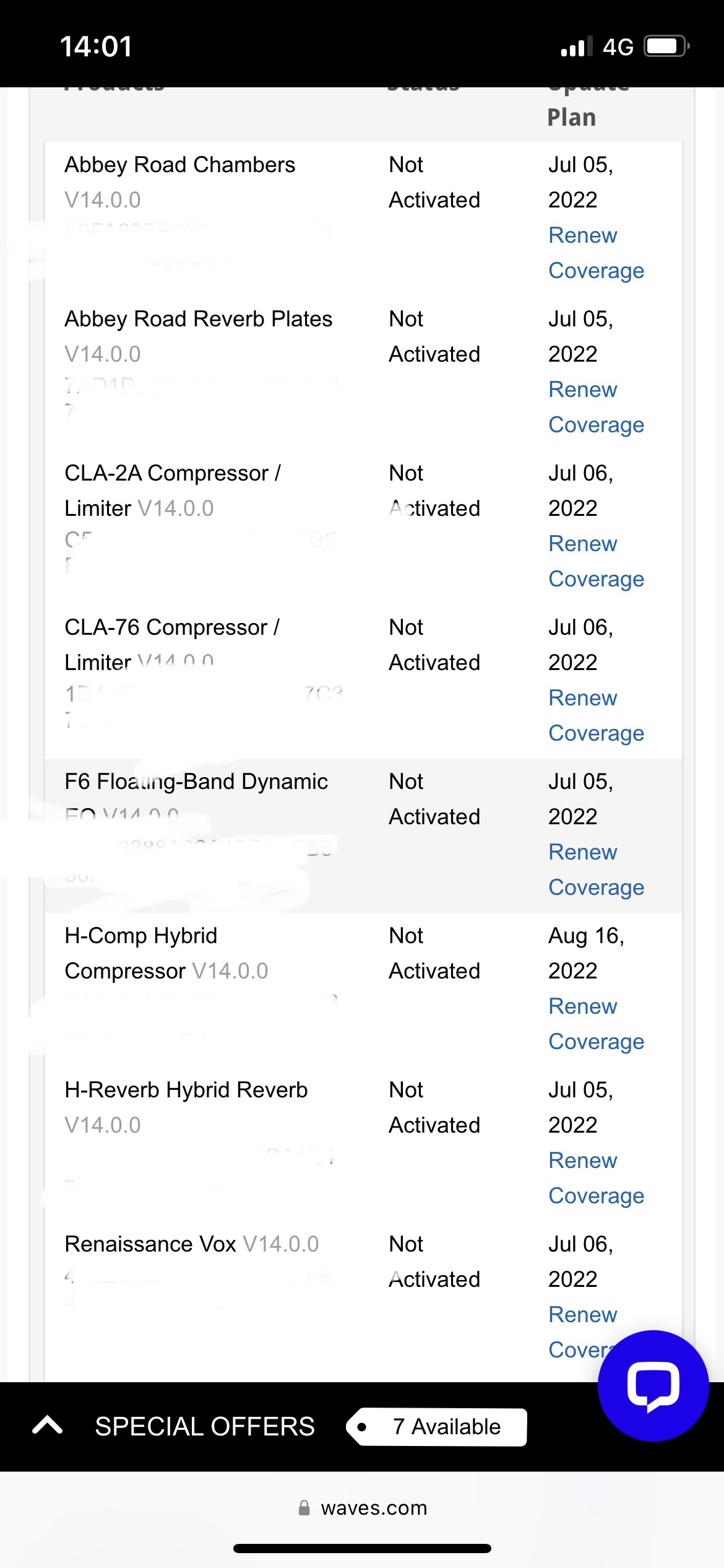 Min tanke är att man kan få ta över mitt waves konto, man kan överföra licenser till ett annat waves konto men då tar waves ut en avgift på 5% av ordinarie pris på pluggarna och det skulle bli ca 6500kr i överförings/ uppdaterings avgift